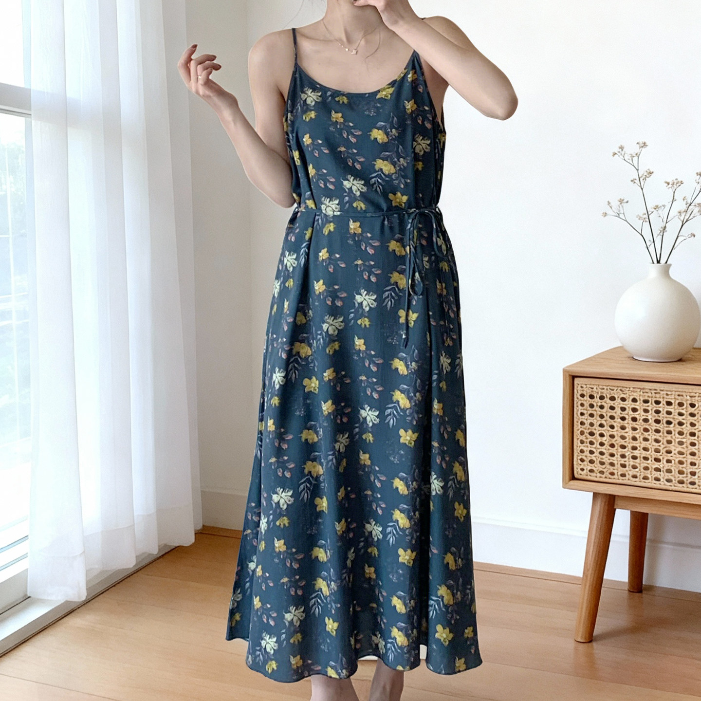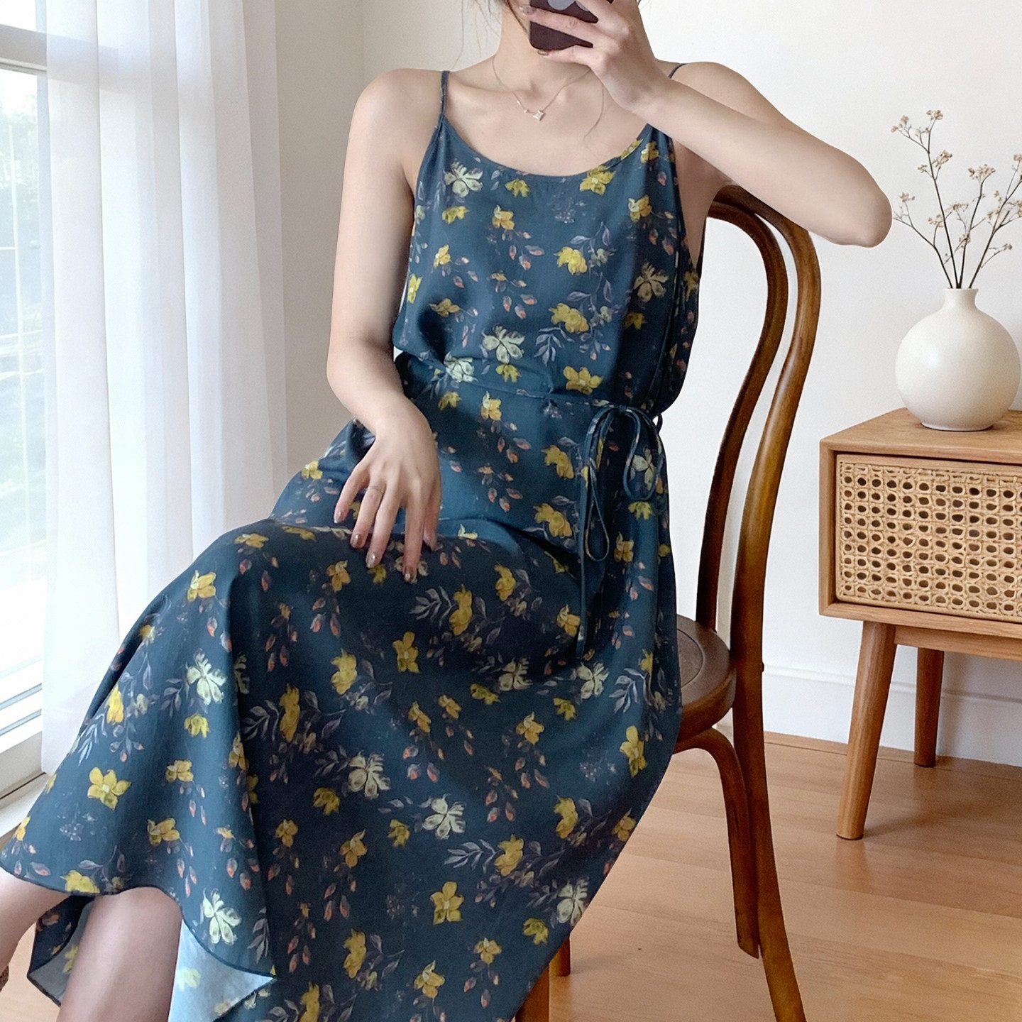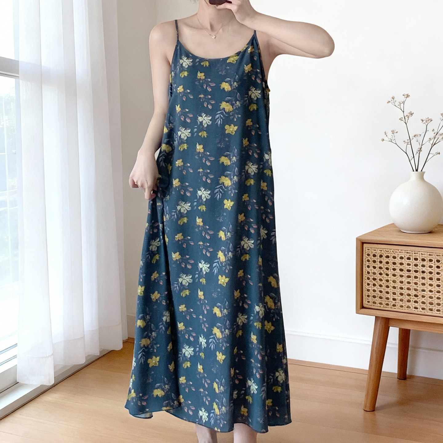 年轻人的棉绸睡裙女款夏季薄款中长裙宽松人造棉吊带裙可外穿睡衣