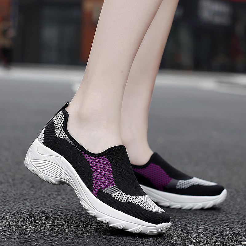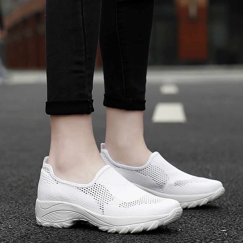 久站不累脚厚底女鞋夏镂空透气网鞋套脚妈妈网面鞋老人健步鞋女式