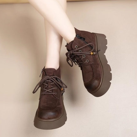 厚底马丁靴女款2025秋冬新款加绒复古小个子大黄蜂增高勃肯短靴子