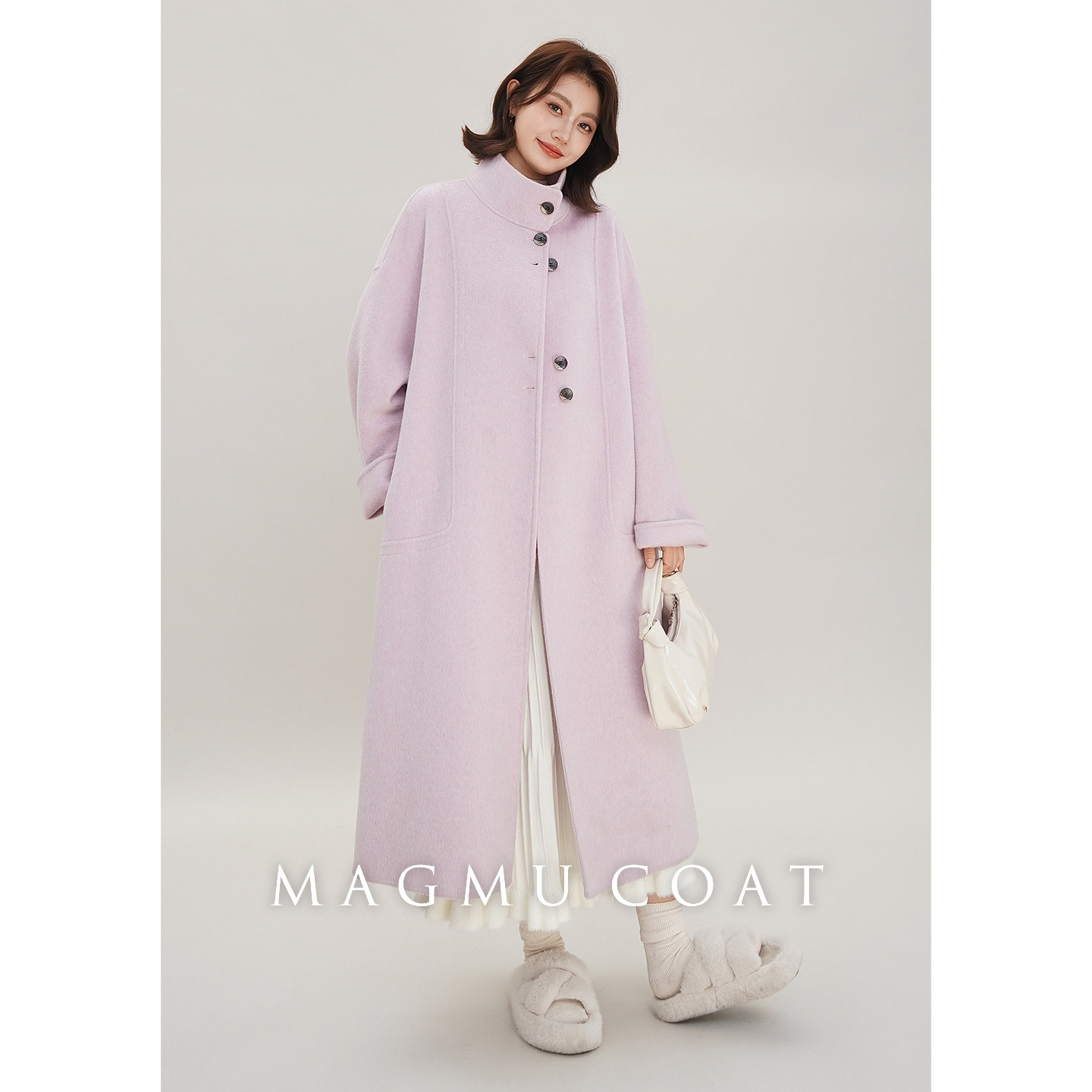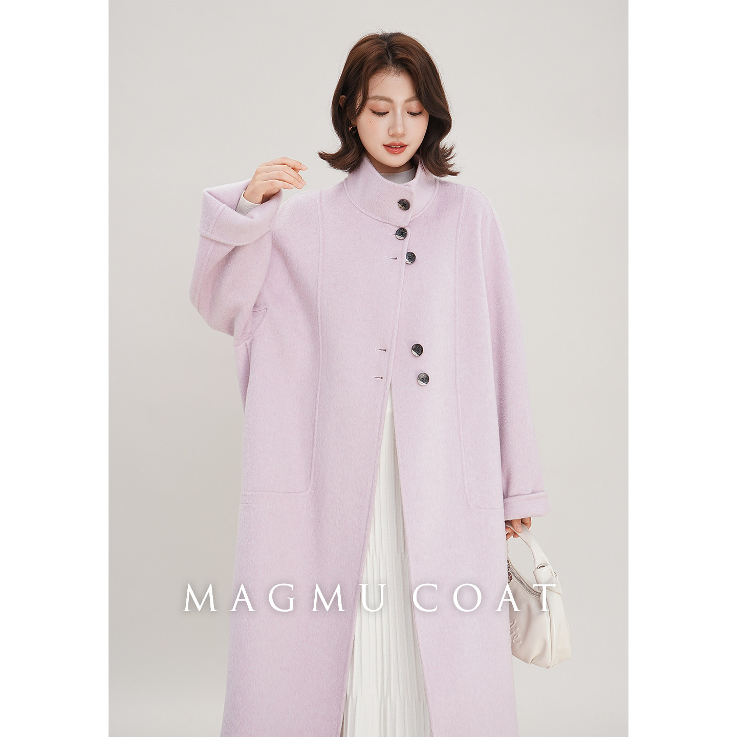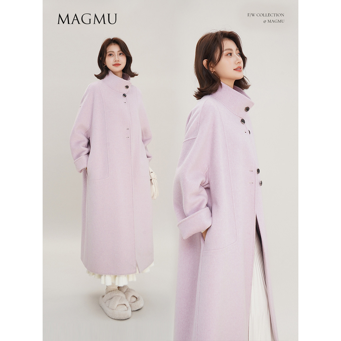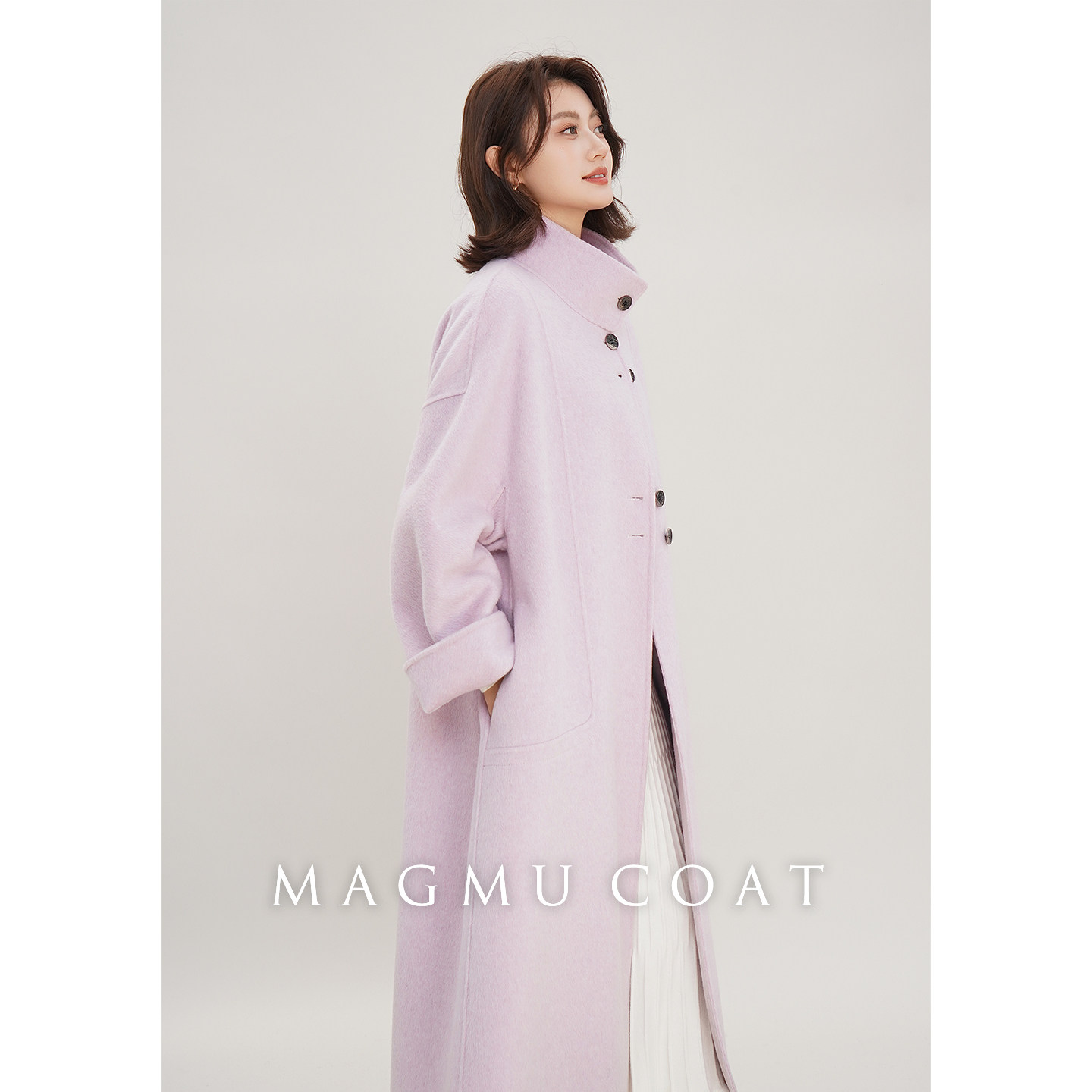 麦格牧【初雪】羊毛双面呢大衣女中长款秋冬小个子山羊绒呢子外套