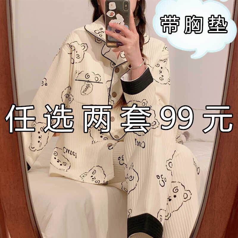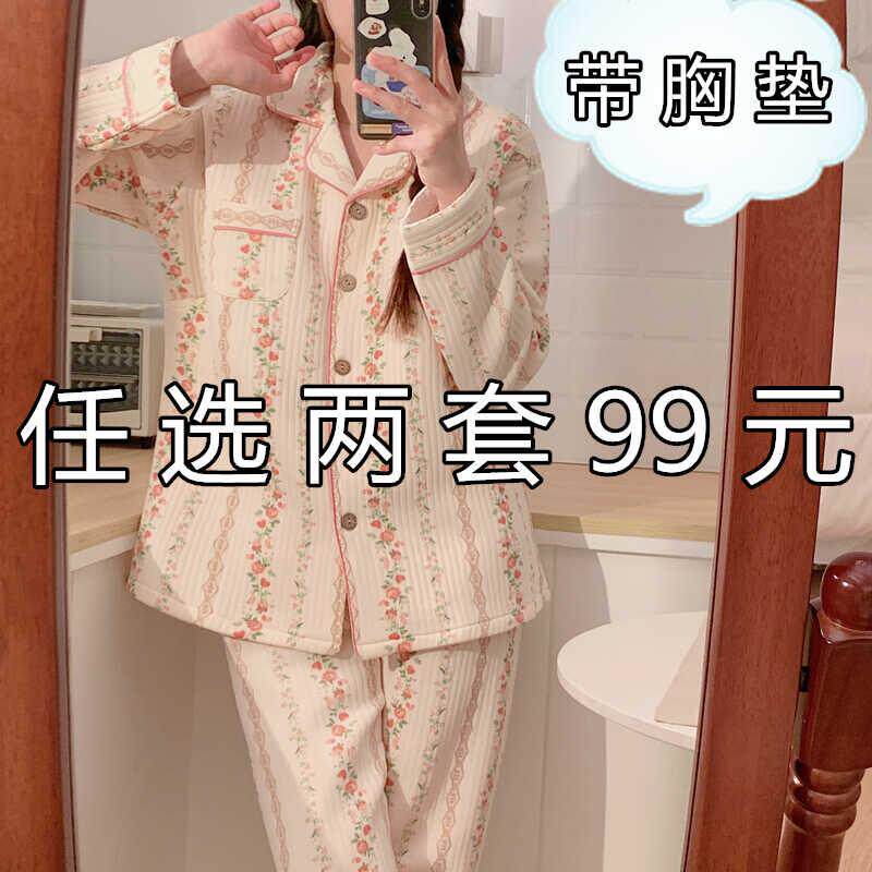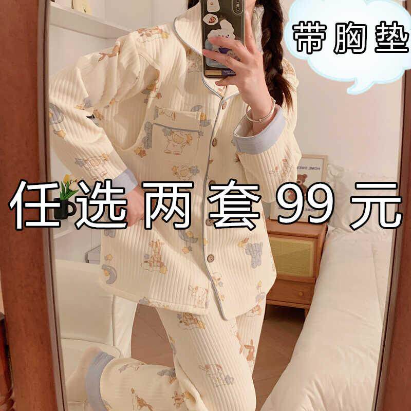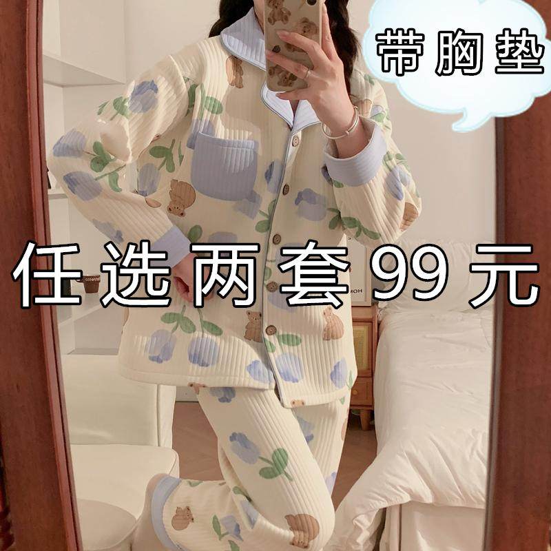带胸垫空气棉月子服秋冬季加厚春秋纯棉产后产妇哺乳喂奶孕妇睡衣