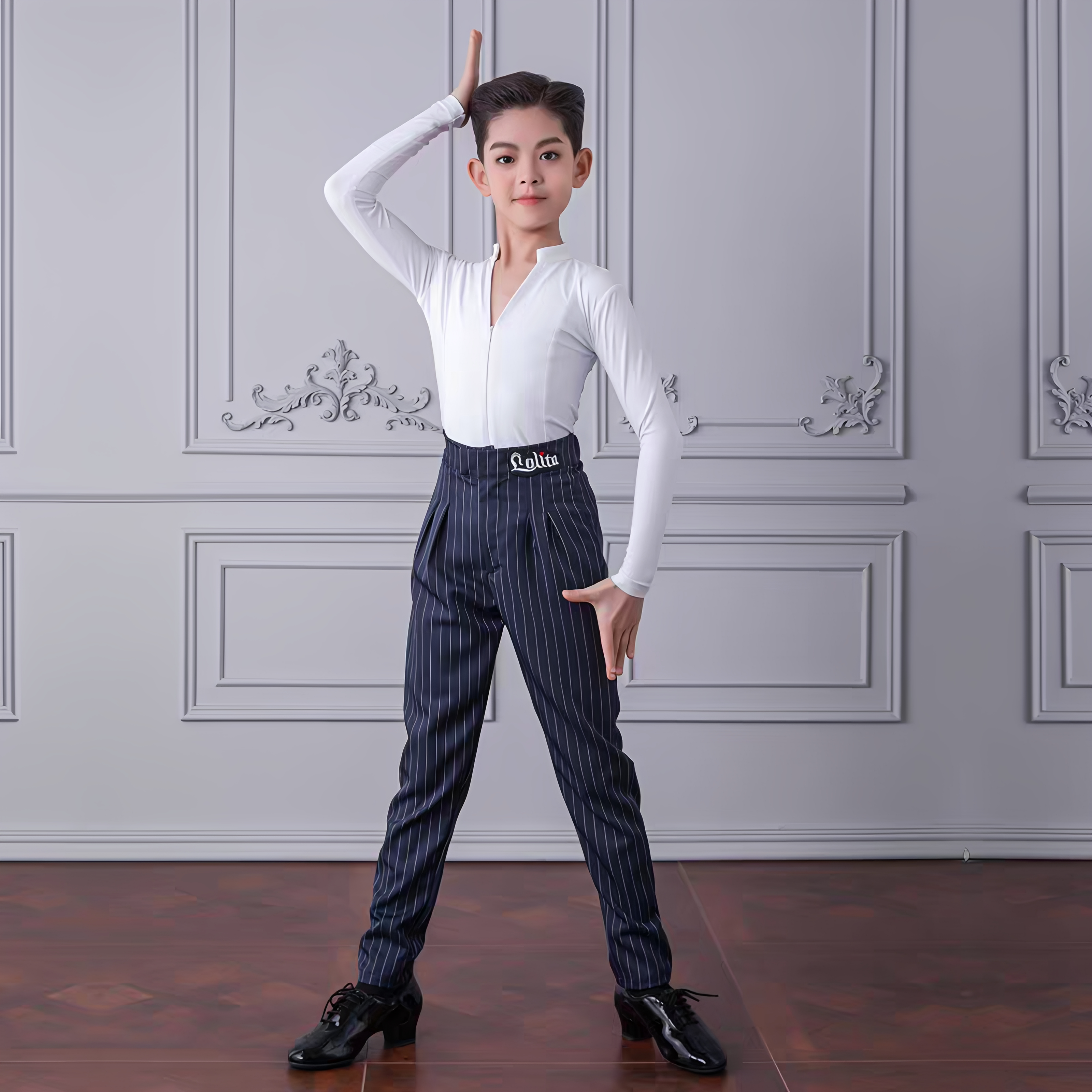 拉丁舞服儿童男孩长短袖上衣练功服裤子高级男童演出训练服比赛服