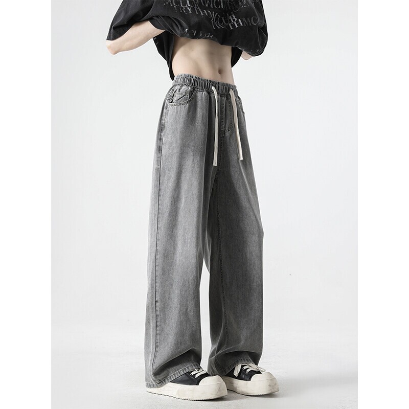 冰丝牛仔裤男夏季薄款2026新款宽松直筒裤子莱赛尔天丝垂感阔腿裤
