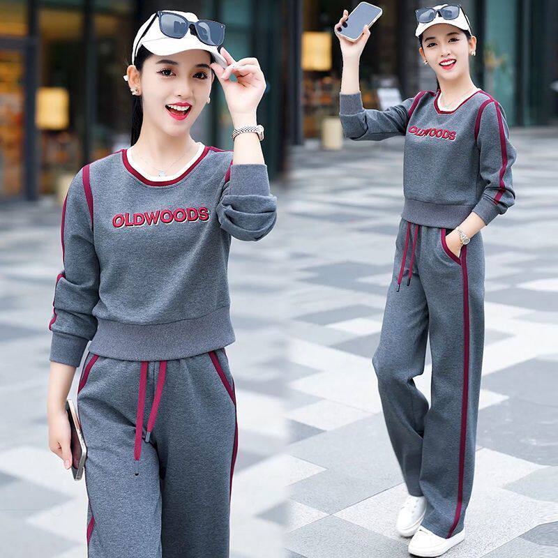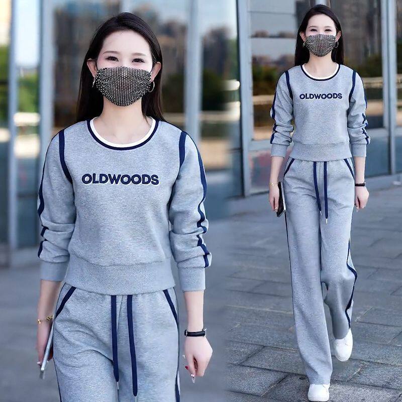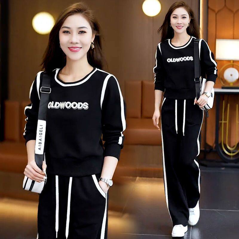 休闲运动服套装女2026春秋季新款宽松显瘦妈妈装直筒裤百搭两件套