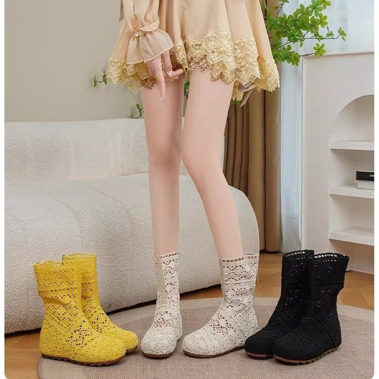 夏天透气短靴内增高6公分透气编织隐形增高蕾丝时尚休闲夏季靴子