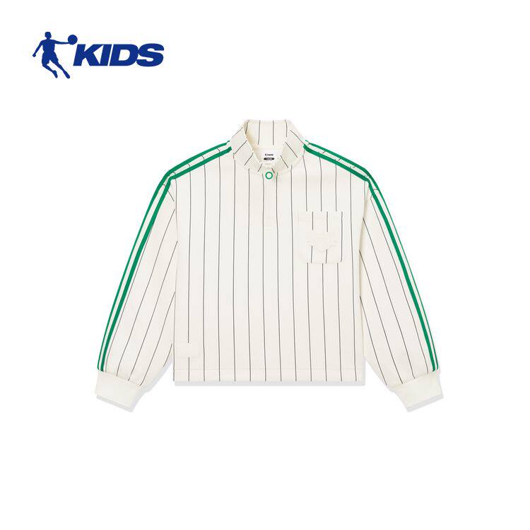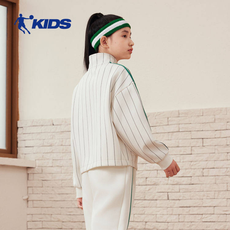 乔丹运动立领外套女童2025秋款篮球服舒适休闲竖条纹半开领上衣