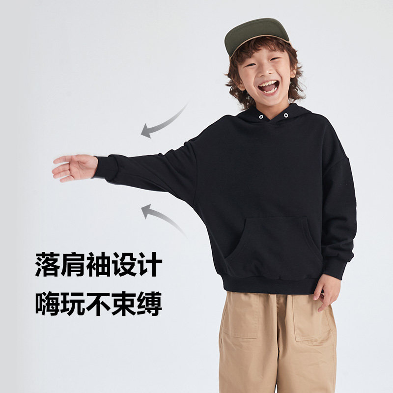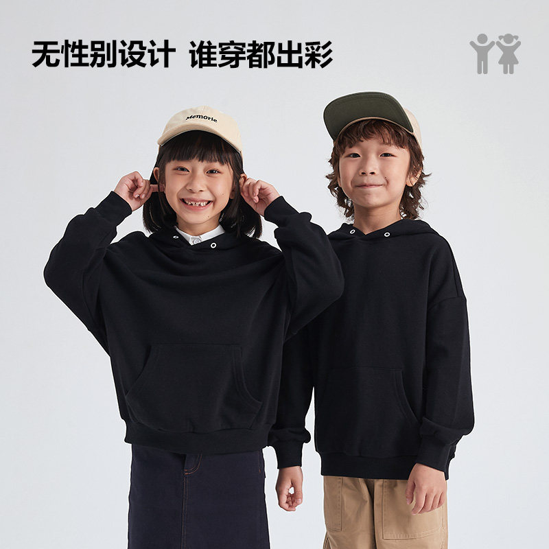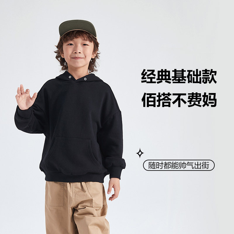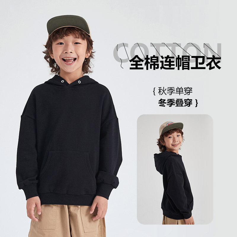 童装洋气卫衣男童秋冬黑色连帽休闲上衣女童纯色宽松长袖外套