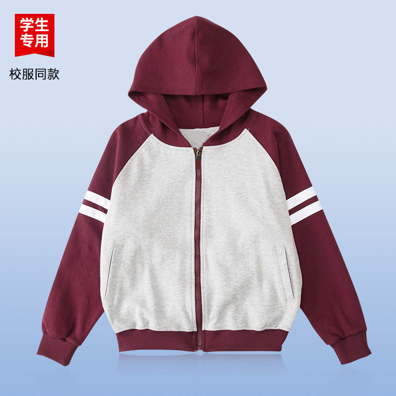 伊顿中小学生学校校服英伦春秋男女童枣红浅灰带帽加绒运动装套装