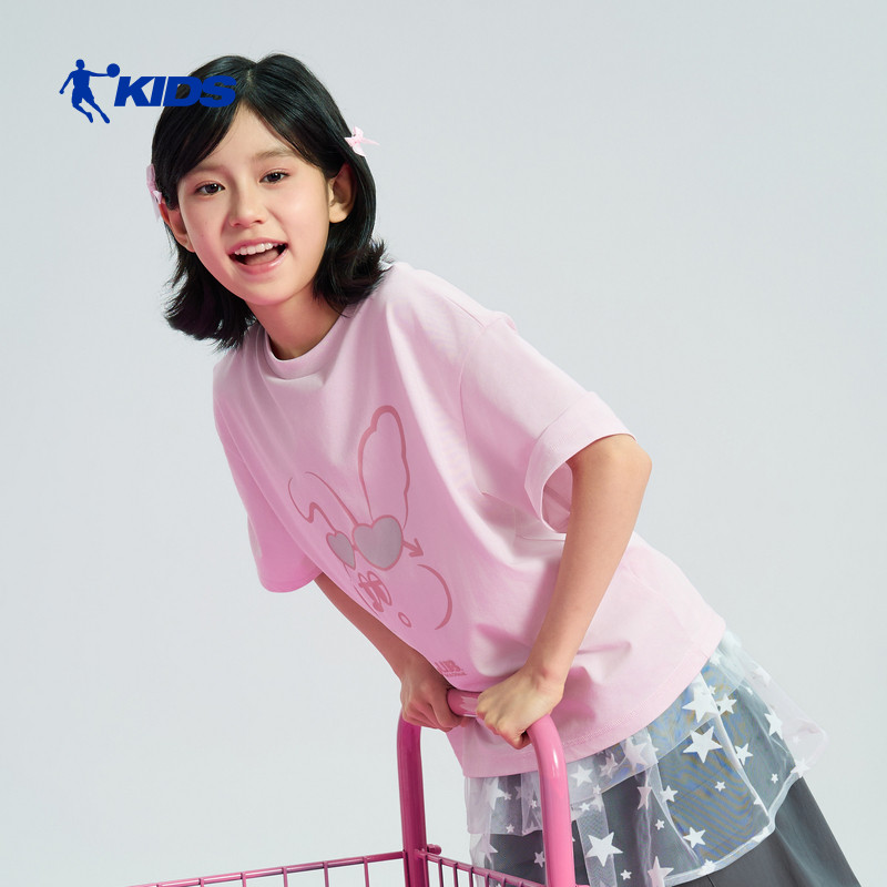 商场同款乔丹儿童短袖T恤2026夏季薄款女大童半袖短T洋气运动上衣