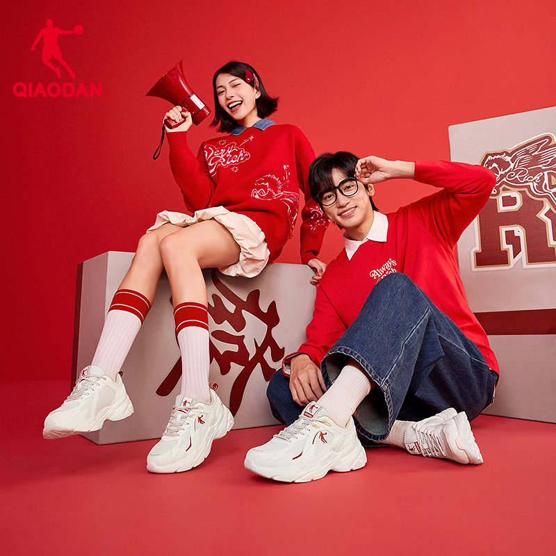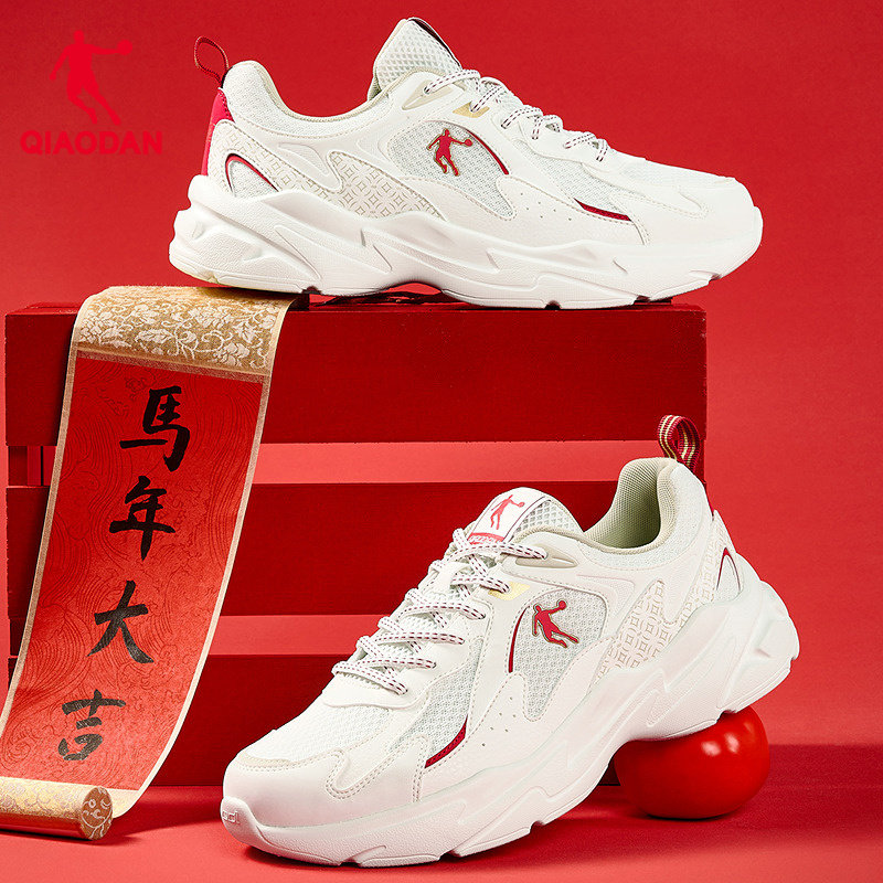 乔丹休闲鞋男新年款红色运动鞋2026春季新款网面透气老爹鞋男鞋子