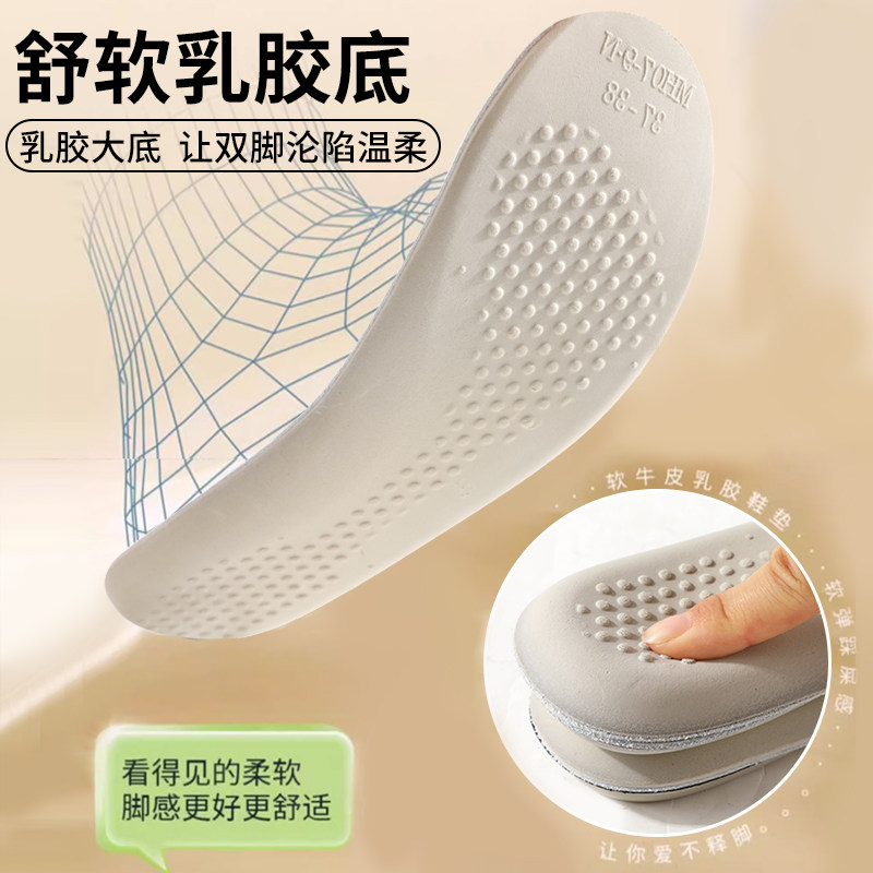 踩屎感牛皮乳胶鞋垫女款软久站超软底真皮皮鞋男运防动吸汗臭