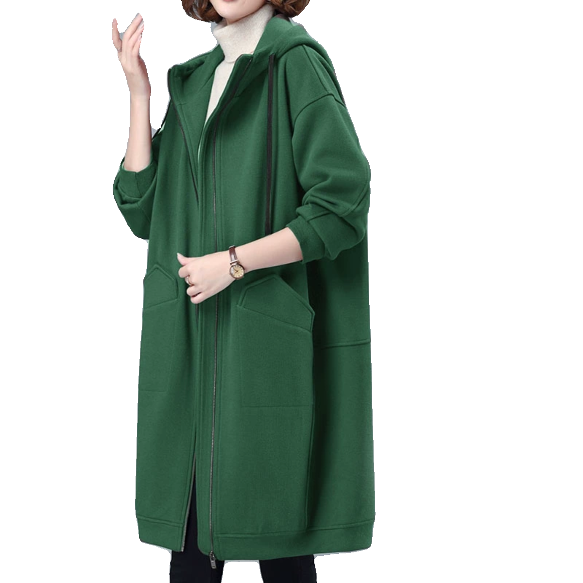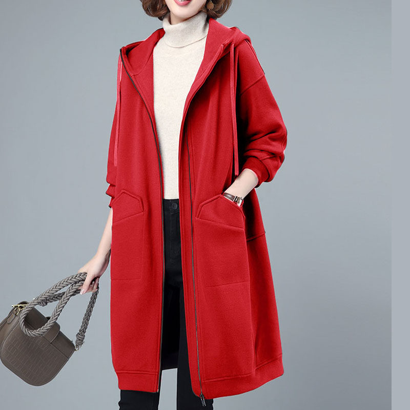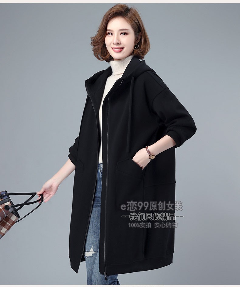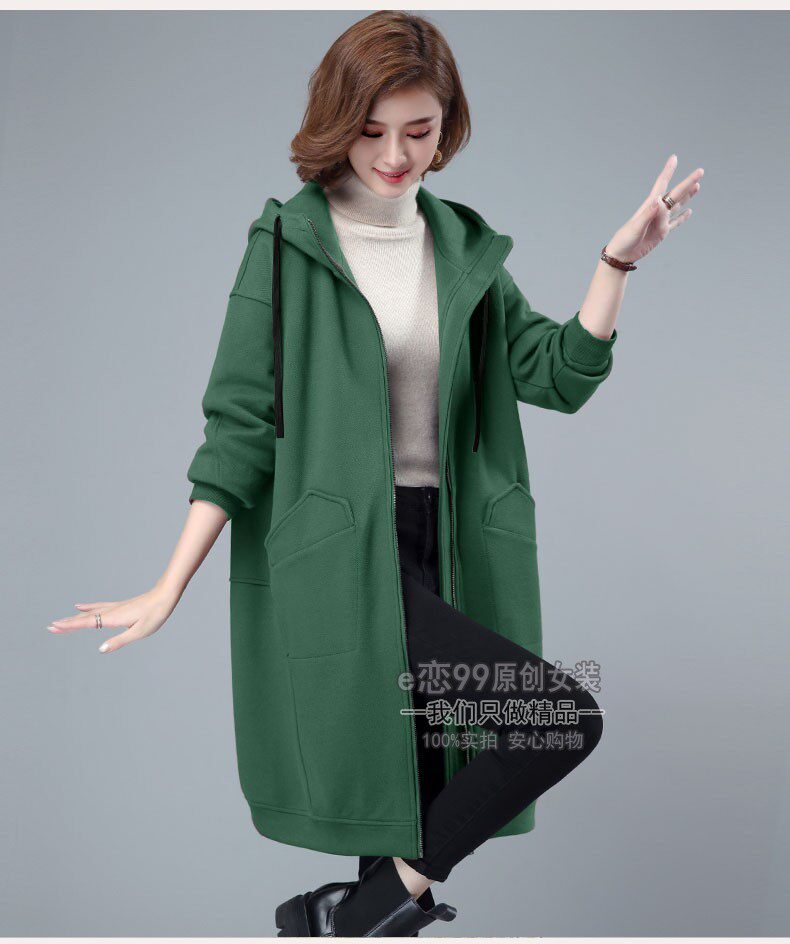 高级感好品质秋冬女胖mm纯棉卫衣开衫宽松连帽加绒中长款加厚外套