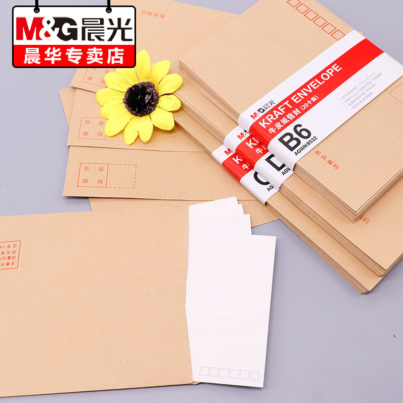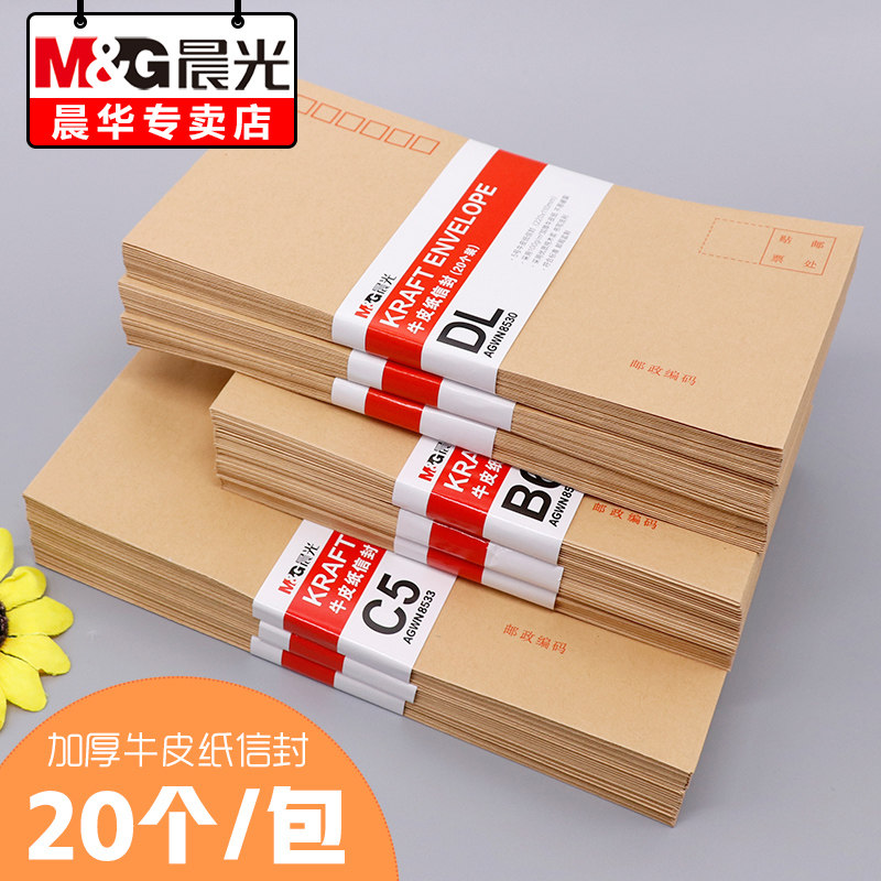 晨光牛皮纸信封黄色信封快递电商信封3号5号7号大号黄色印刷邮局标准信封袋工资袋双胶简约发票增票信封批发