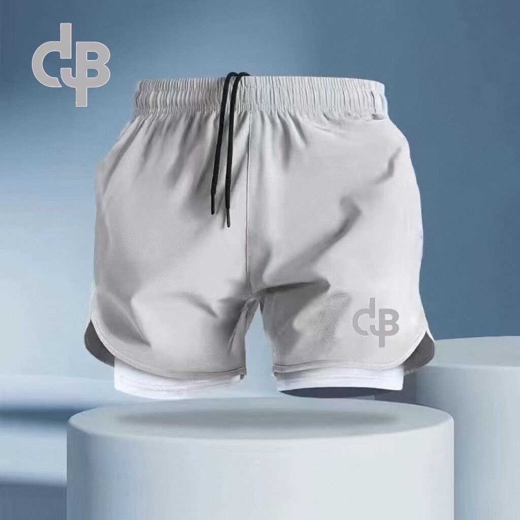 新款防走光假两件田径运动短裤男夏薄款透气跑步游泳带内衬训练裤