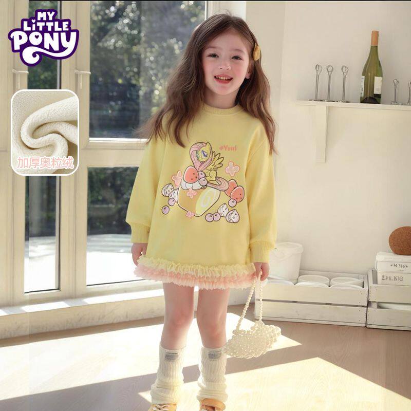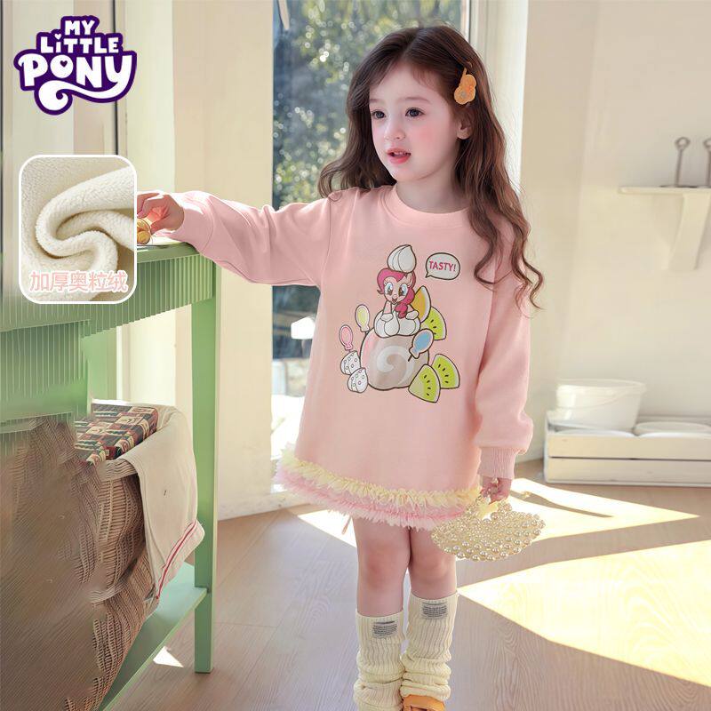 小马宝莉女童蕾丝连衣裙2025秋冬加绒加厚甜美中大童女孩公主裙子