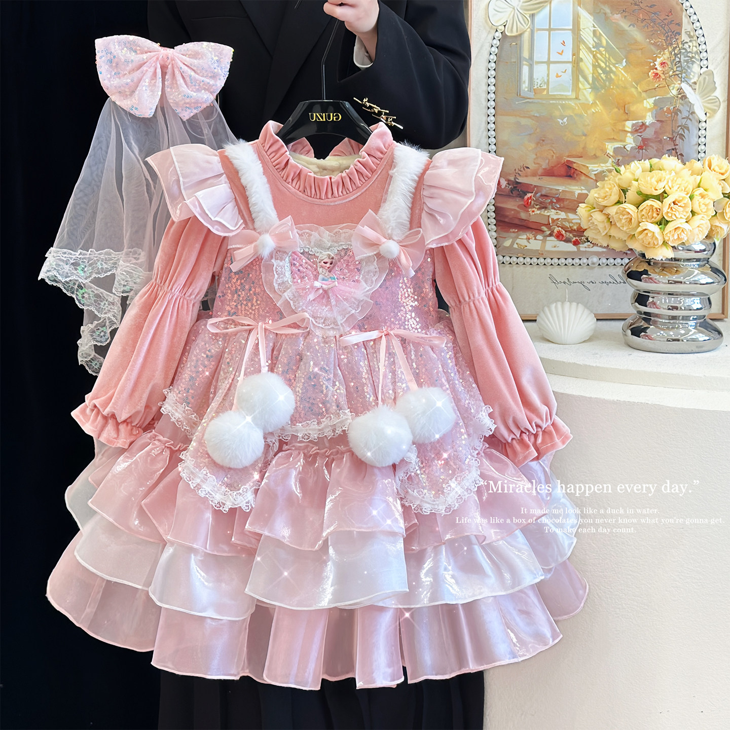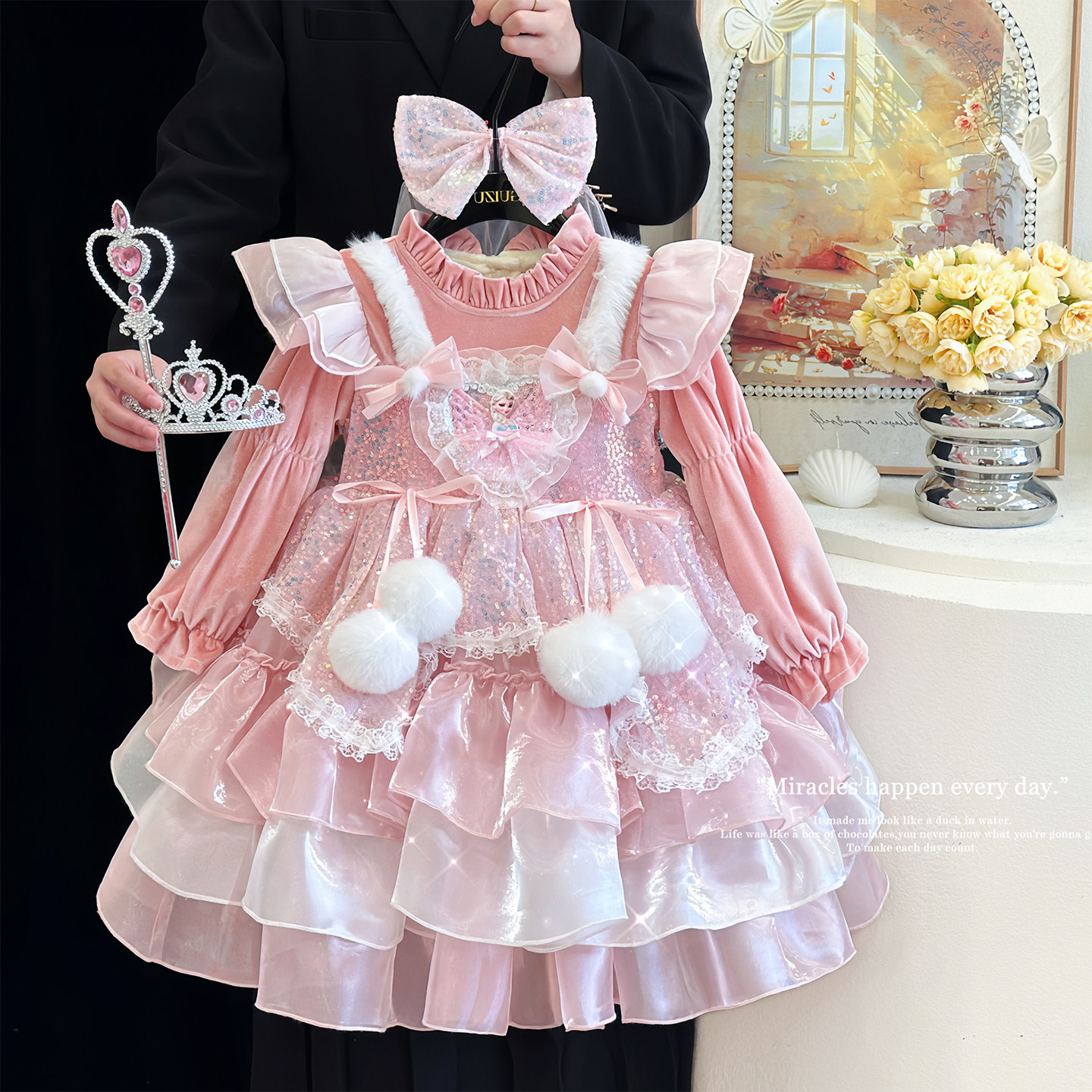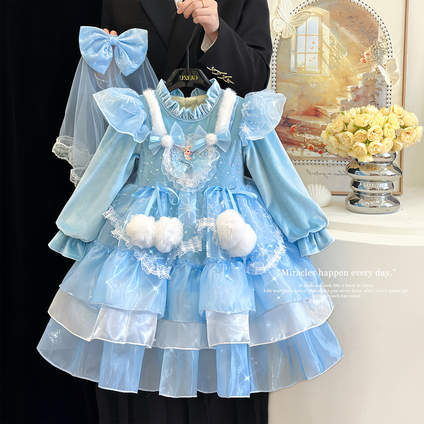 女童爱莎公主裙冬季冰雪蓝色儿童艾莎连衣裙高级感洛丽塔加绒裙子