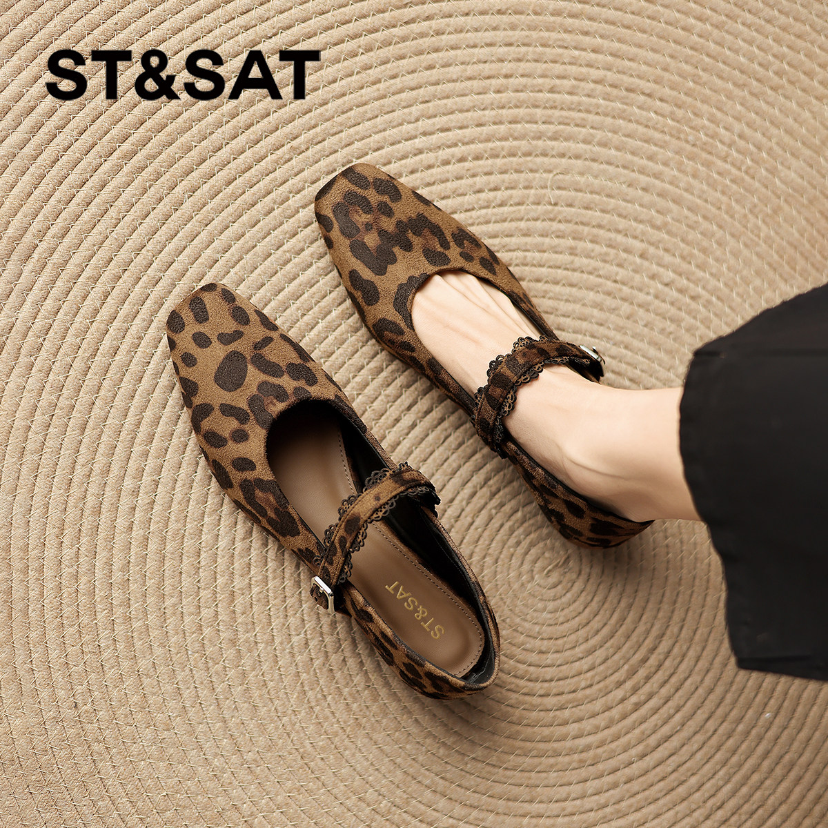 311线报网描述:豹纹元素搭配方头玛丽珍版型,蕾丝扣带细节