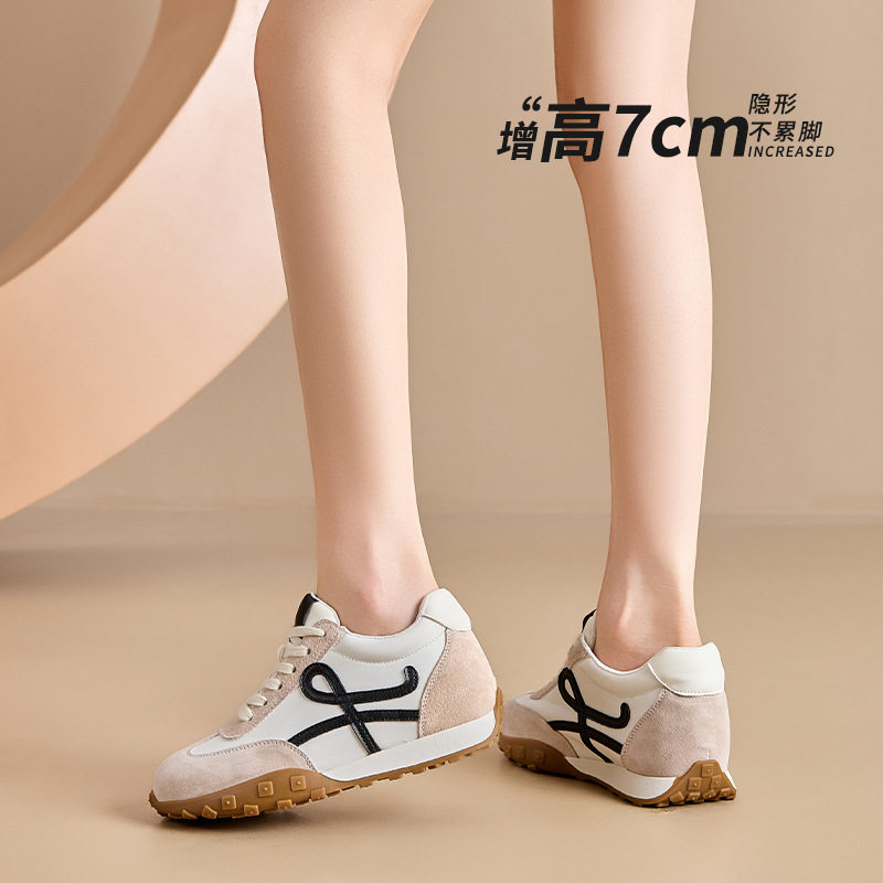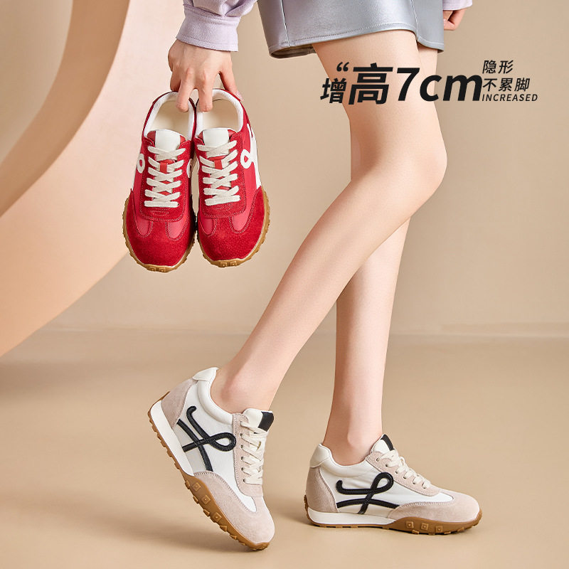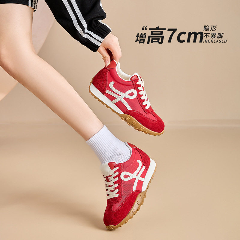 7CM内增高红色德训鞋女春季软底真皮百搭透气休闲运动复古阿甘鞋