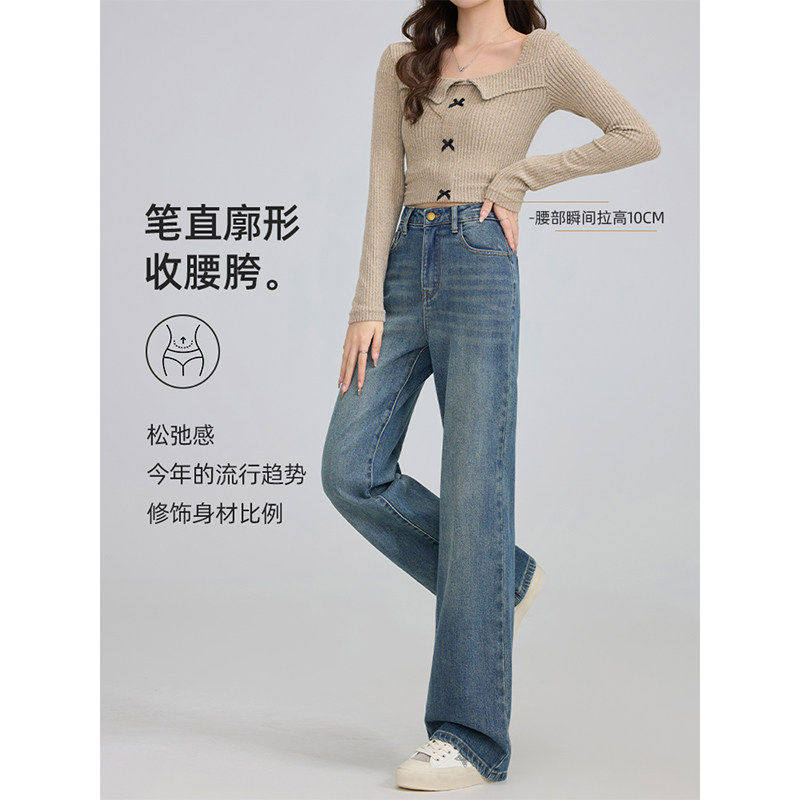 阔腿牛仔裤女2026新款春秋小个子复古宽松高腰梨型遮胯显瘦直筒裤
