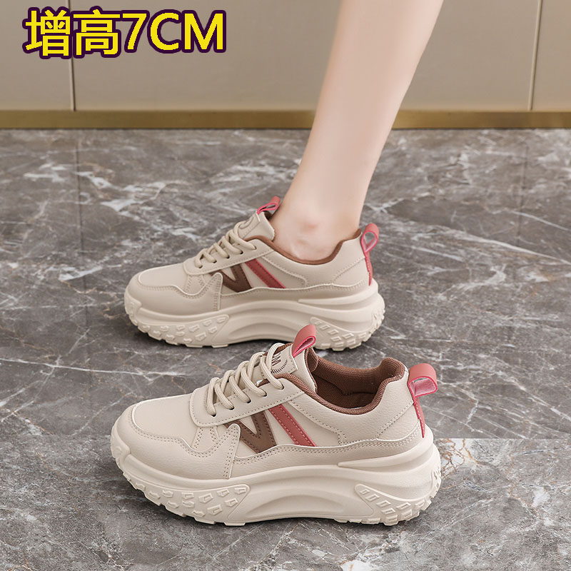 小个子7CM内增高老爹鞋女2025新款爆款厚底运动休闲配裙子单鞋34