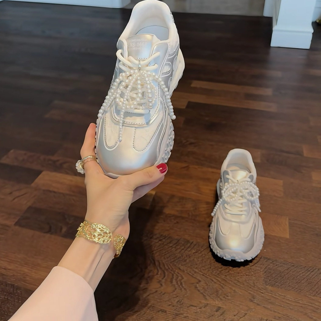 德训老爹鞋女春夏新款小个子厚底7cm内增高蕾丝边休闲运动阿甘鞋