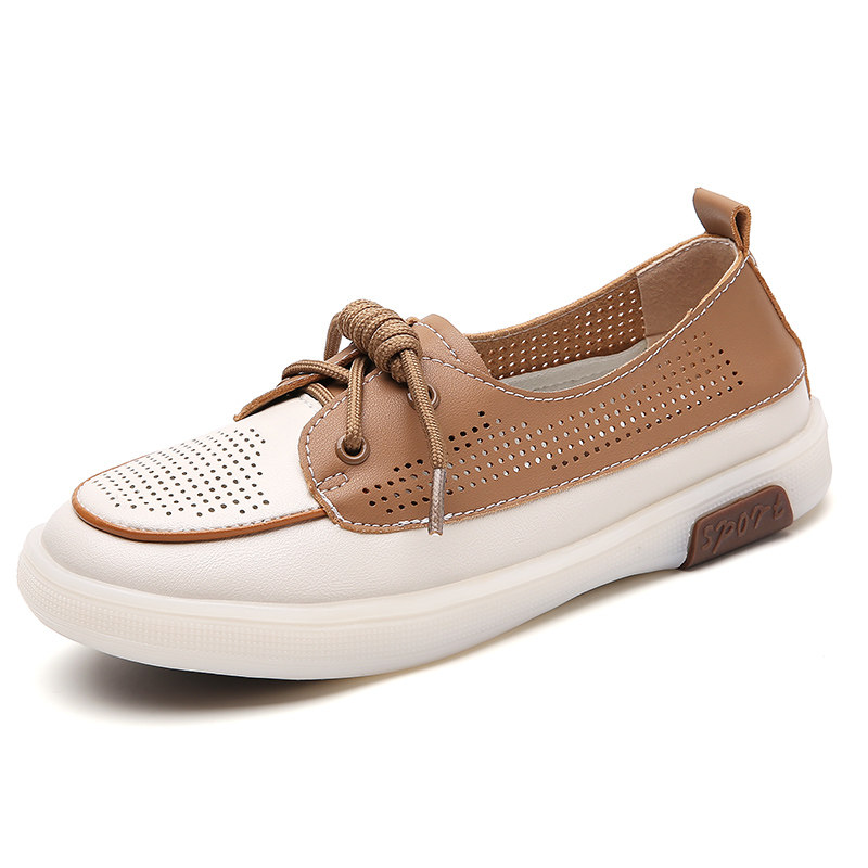 真皮镂空小皮鞋女2024春季新款透气不闷脚休闲鞋时尚浅口单鞋女鞋