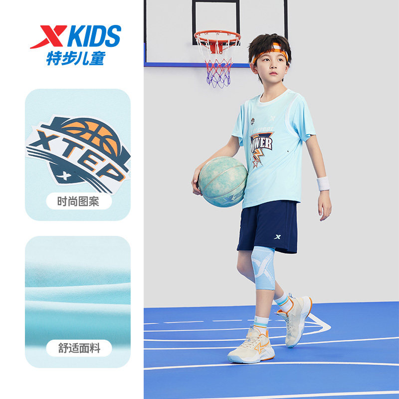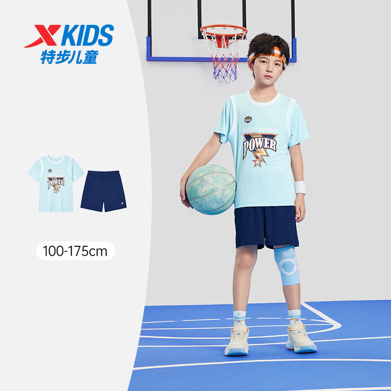 篮球套装丨特步童装篮球套装夏季运动服男女童短袖短裤2件套透气
