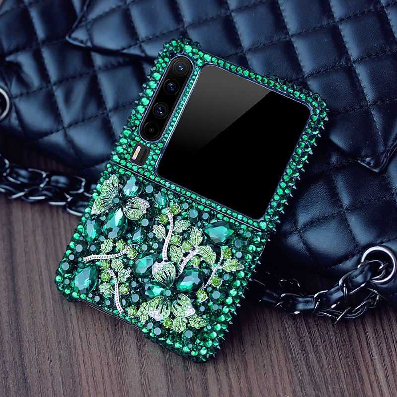 HP适用于华为puraX阔折叠绿色水钻手机壳PuraX原创定制小众重工