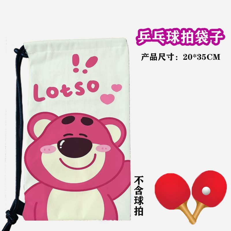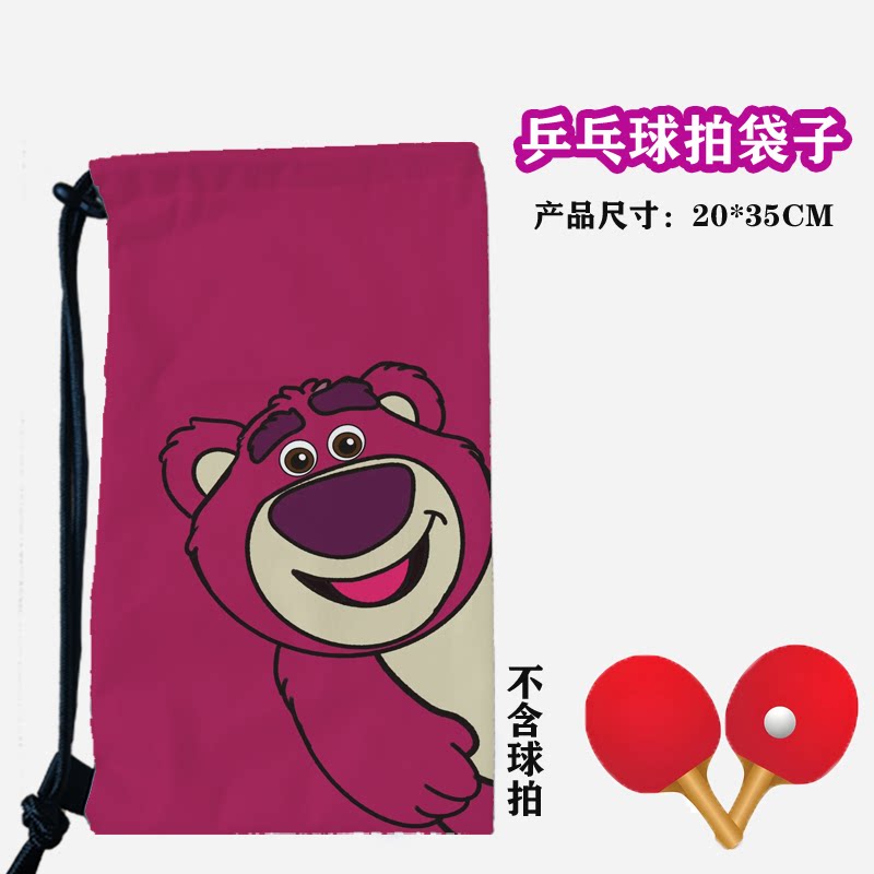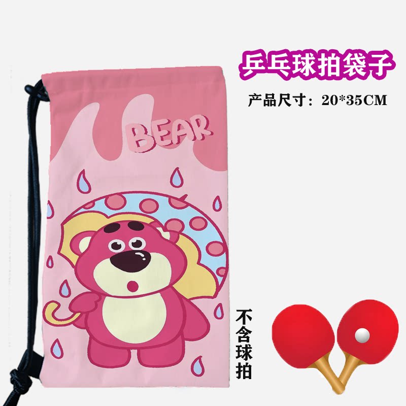 卡通草莓熊粉色可爱乒乓球拍套拍包抽绳束口大容量收纳便携运动