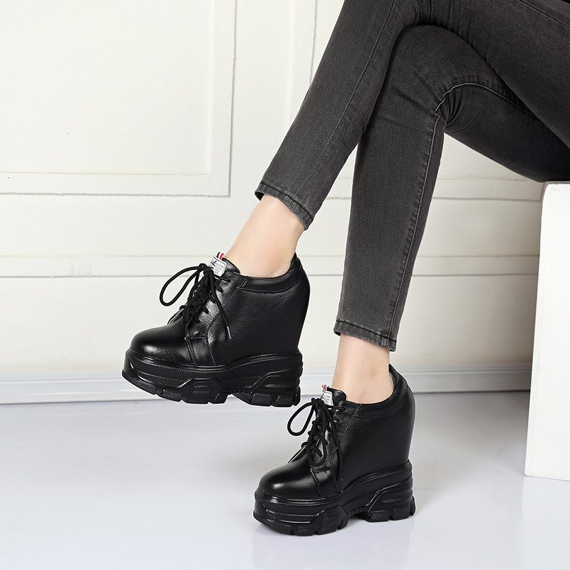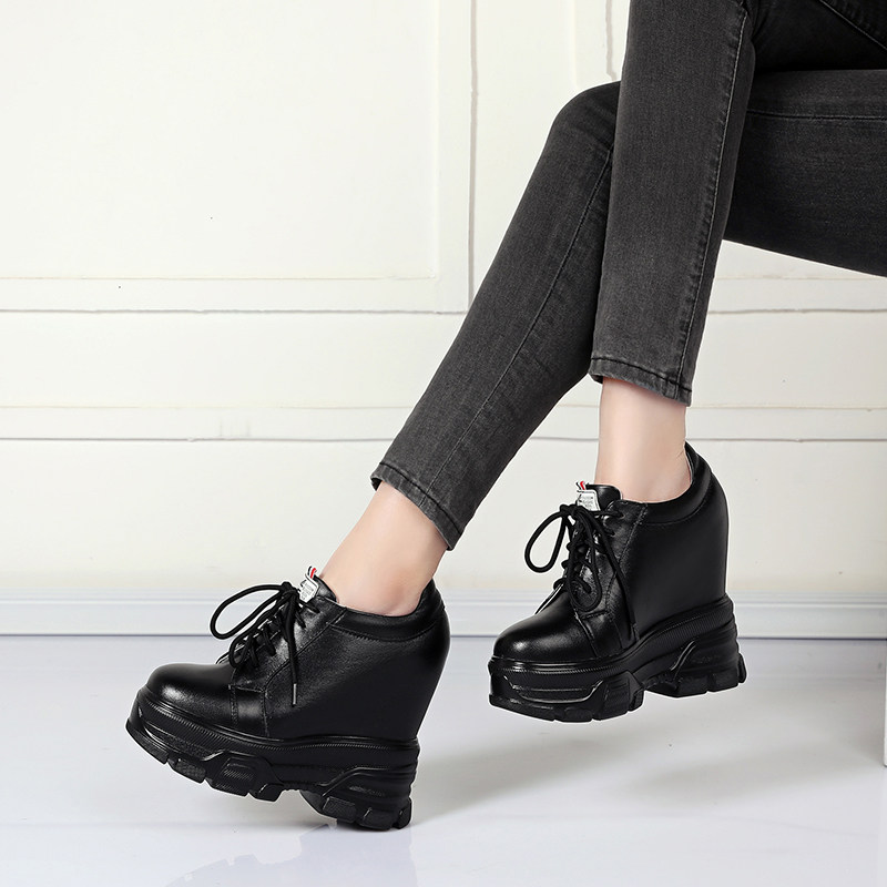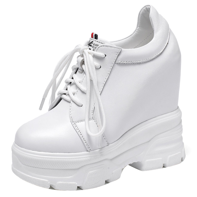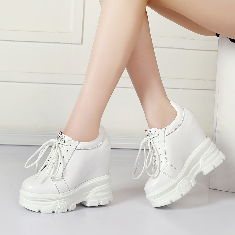 14cm内增高女鞋百搭松糕春秋单鞋超高跟真皮厚底休闲小白鞋