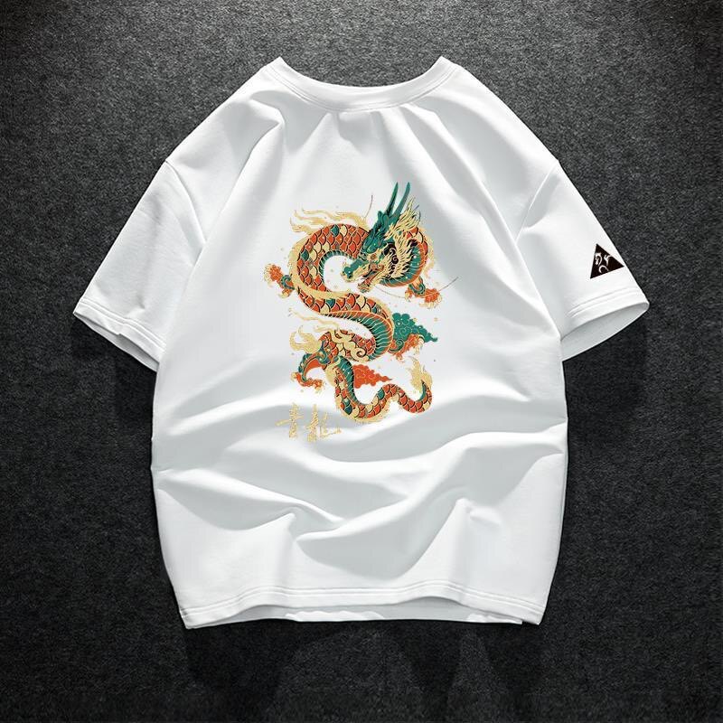 法国公鸡纯棉短袖男宽松圆领红色T恤青少年2024龙年本命年衣服潮