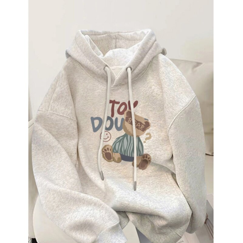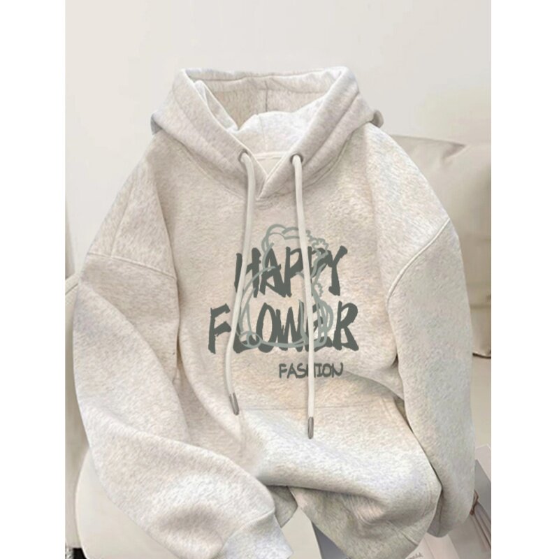 韩系灰色连帽卫衣女款2026秋冬新款爆款宽松外套加绒加厚长袖上衣