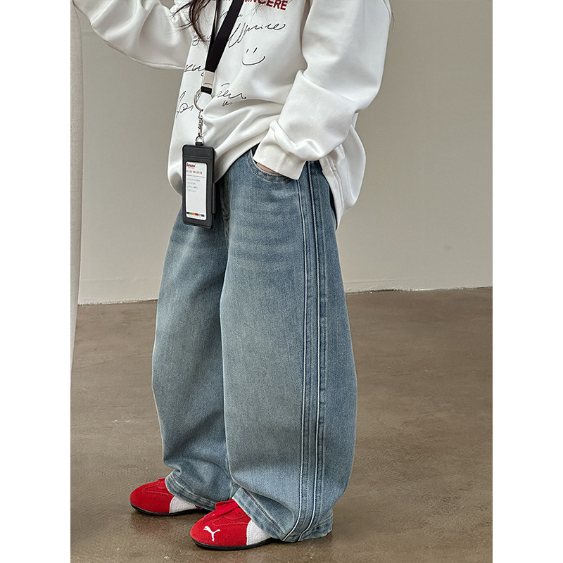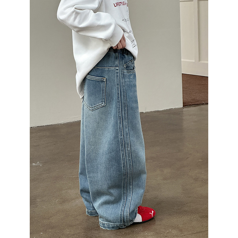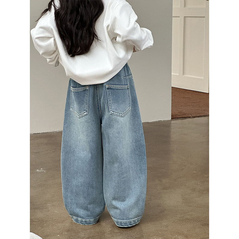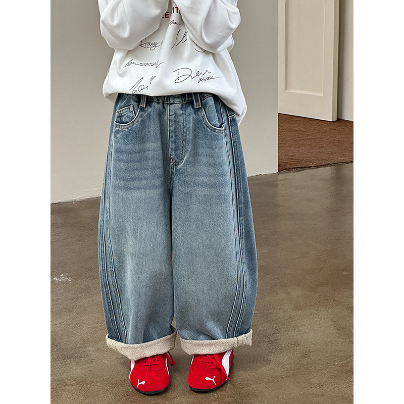 BEIFU贝芙 女童韩版奥粒绒阔腿裤儿童韩版加厚保暖裤子薄绒牛仔裤