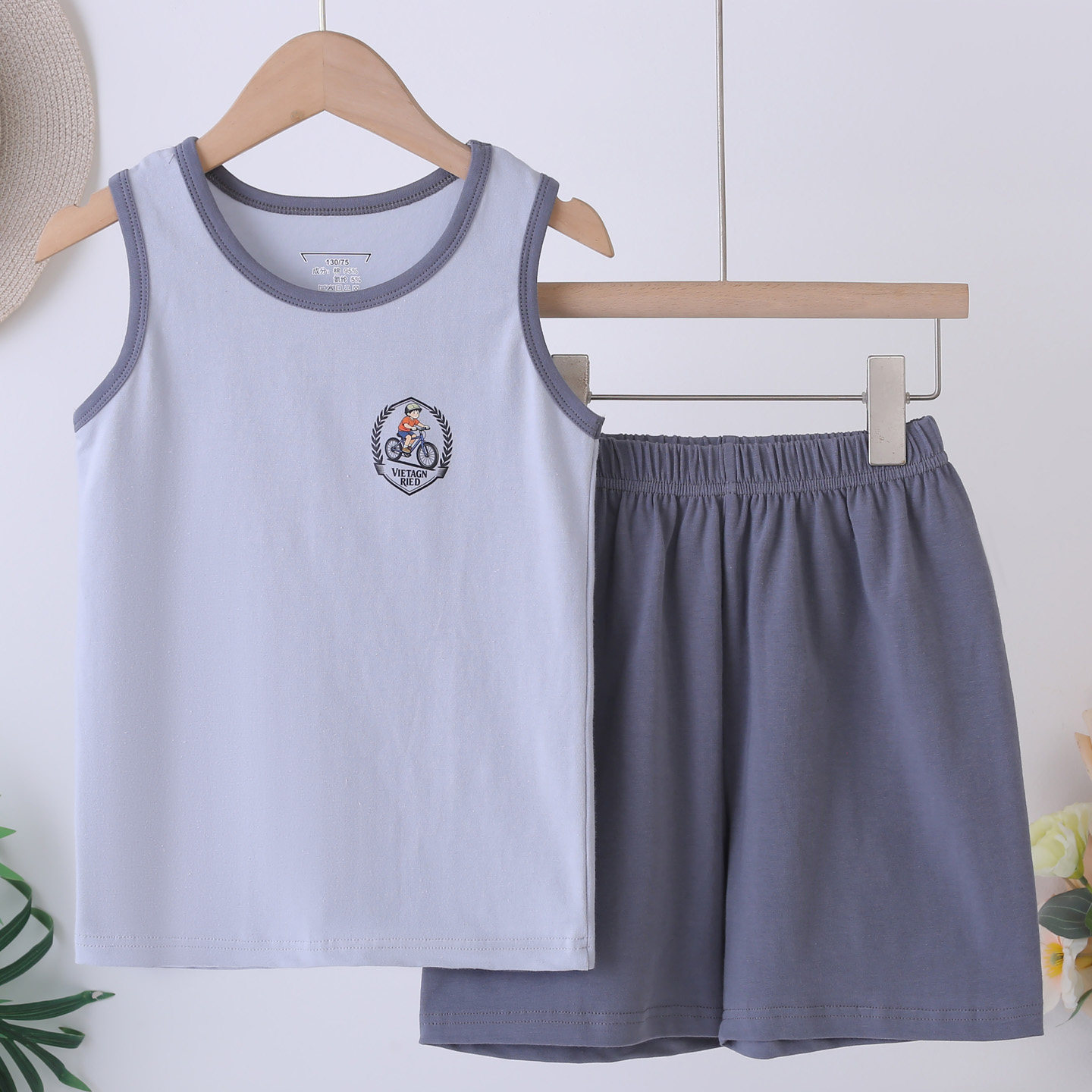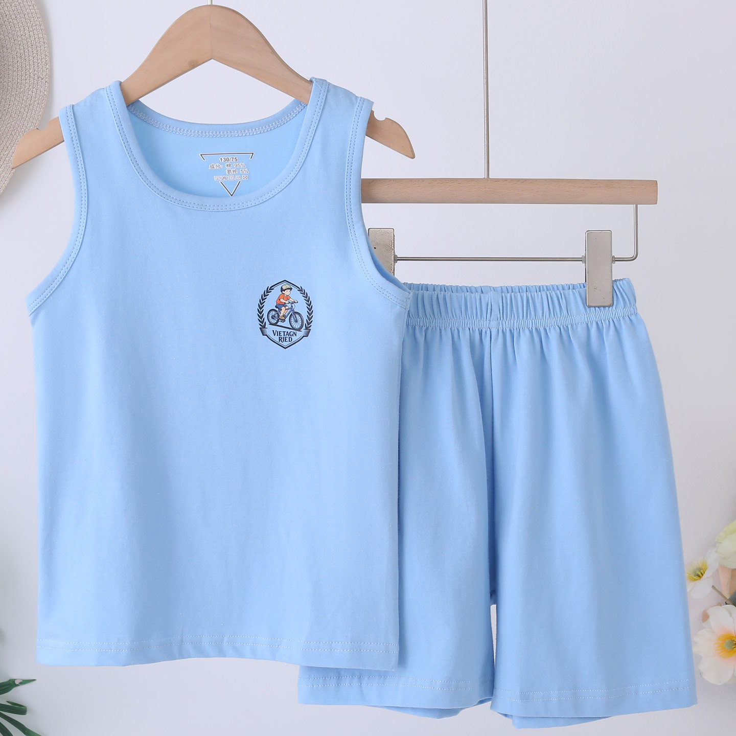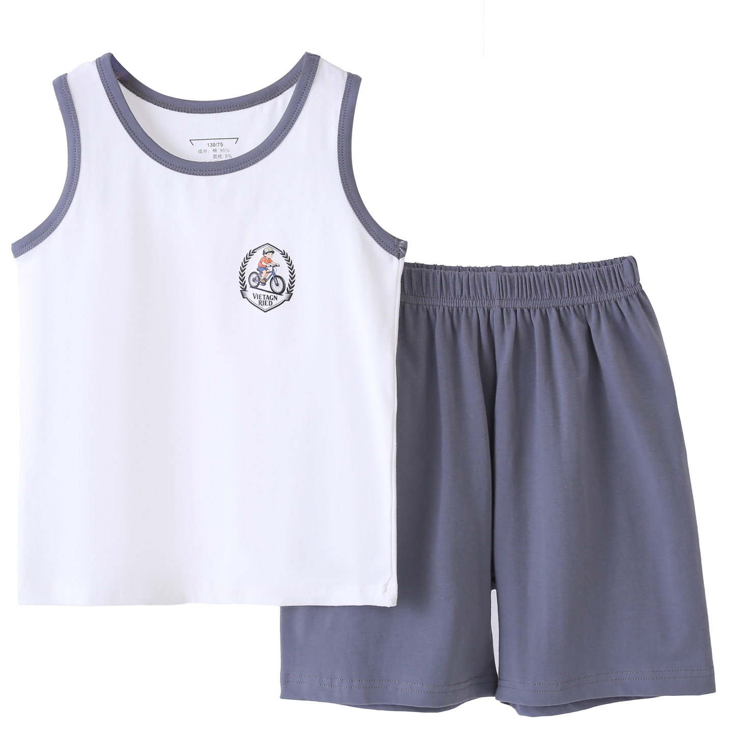 莱卡棉儿童背心套装男童女童纯棉A类中大童运动背心+短裤套装夏季