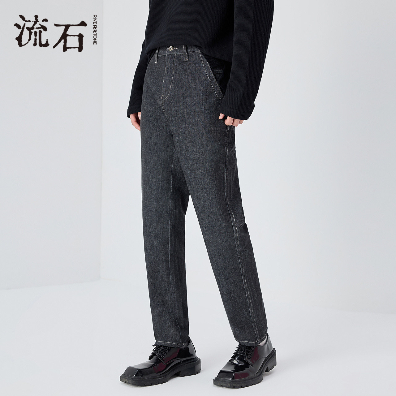 流石男装春装简约直筒休闲牛仔裤男士2026年新款春季复古宽松长裤