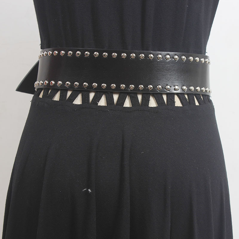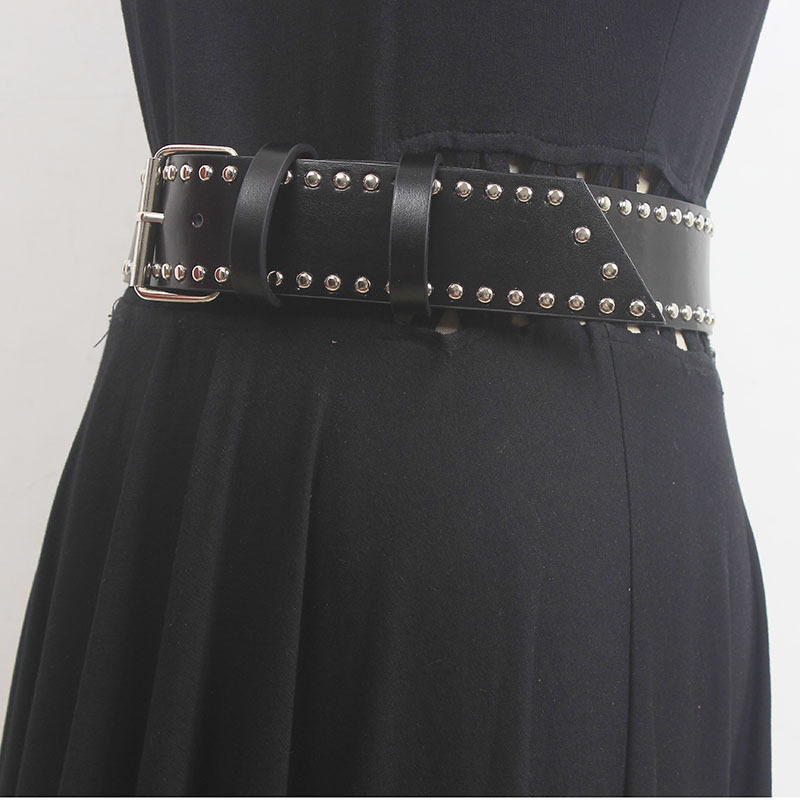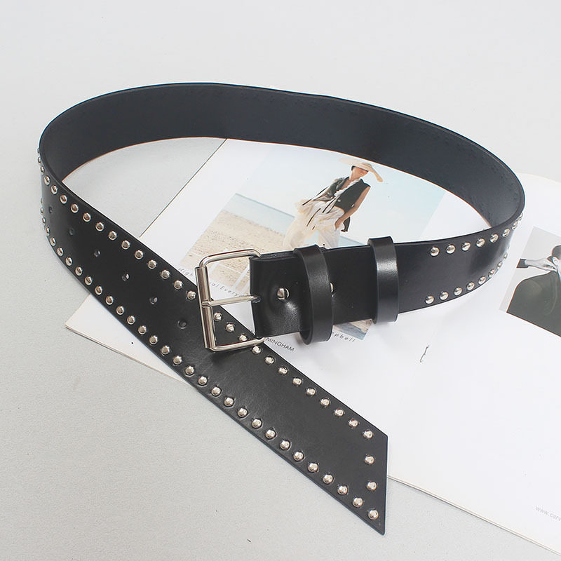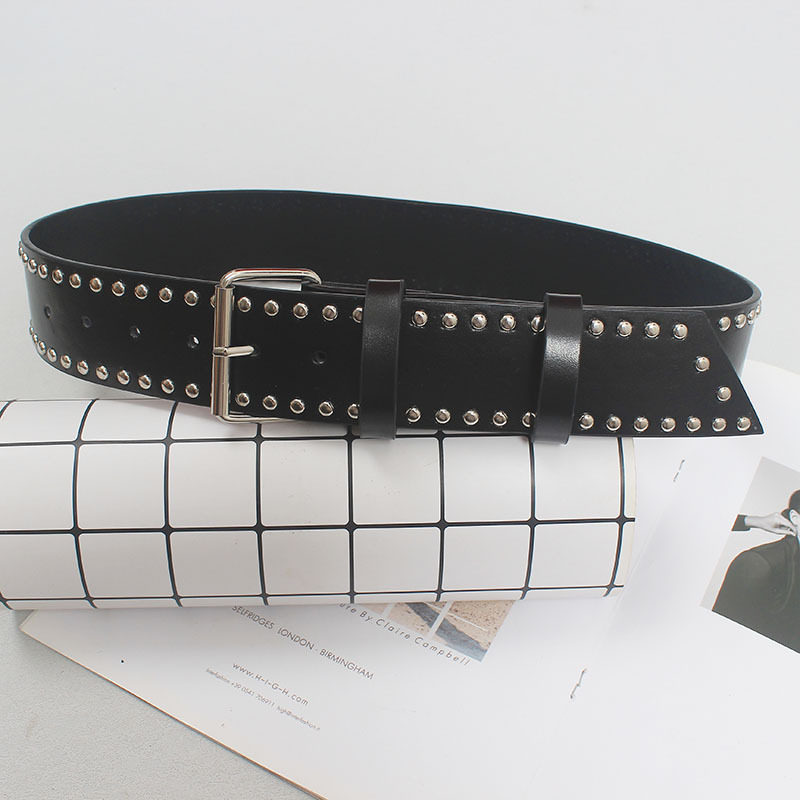男女皮带头层牛皮明星同款双排扣眼朋克风机车百搭牛仔裤真皮腰带