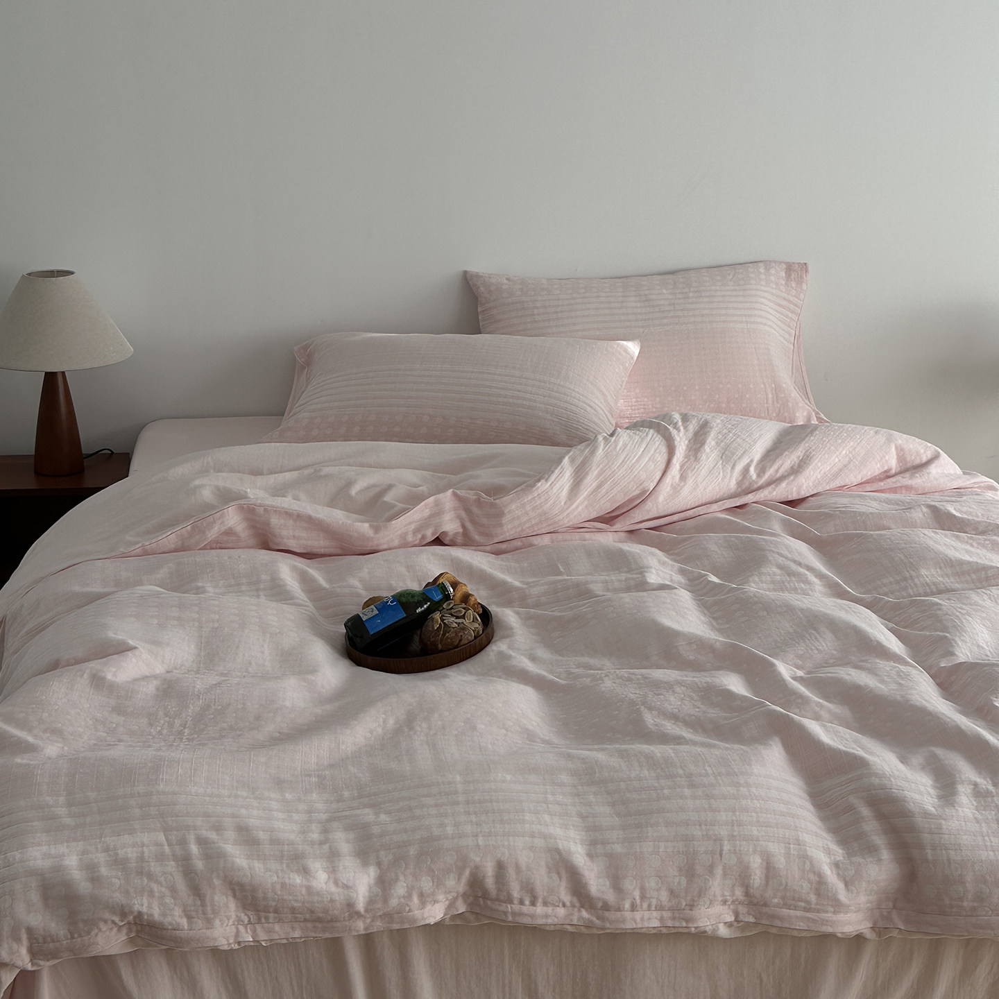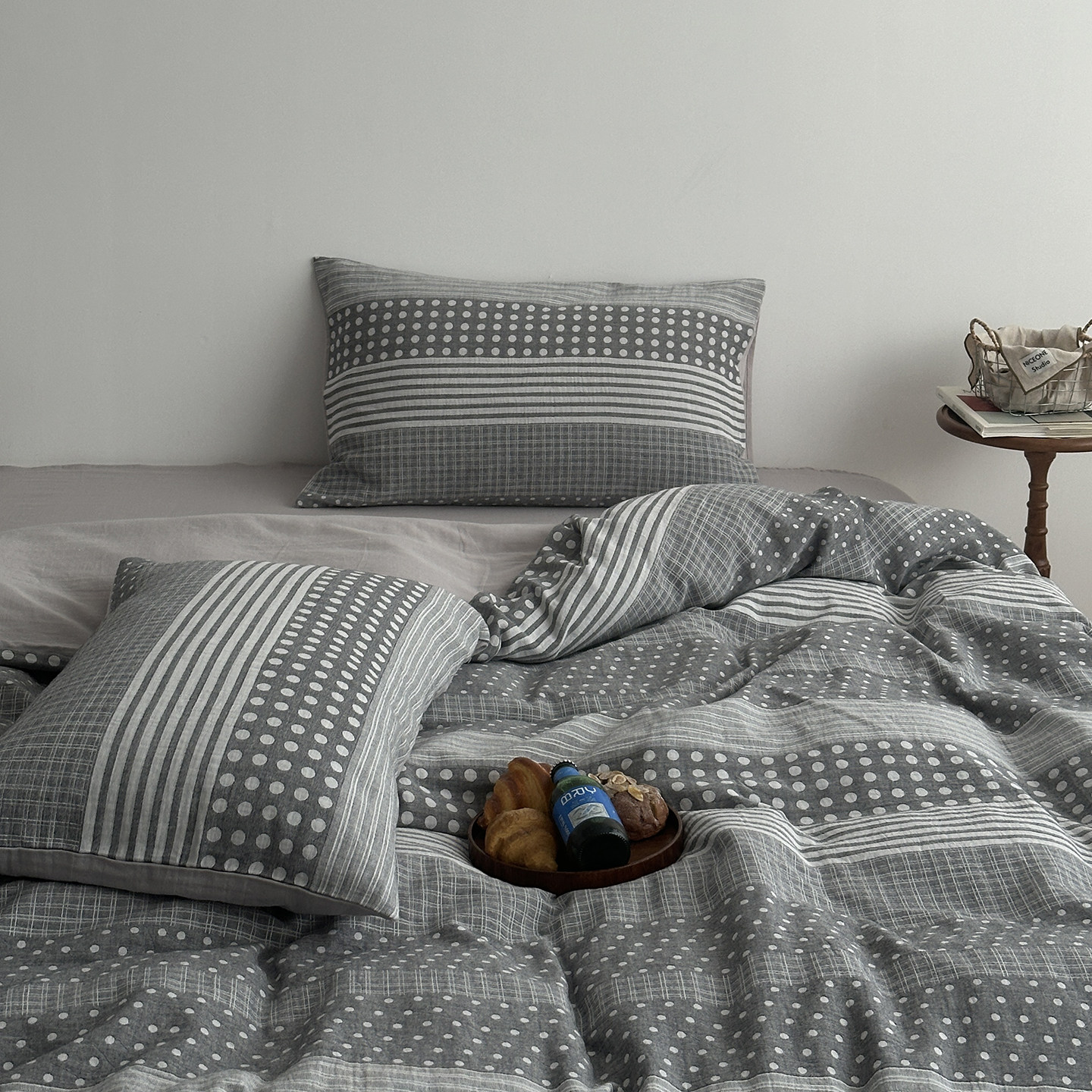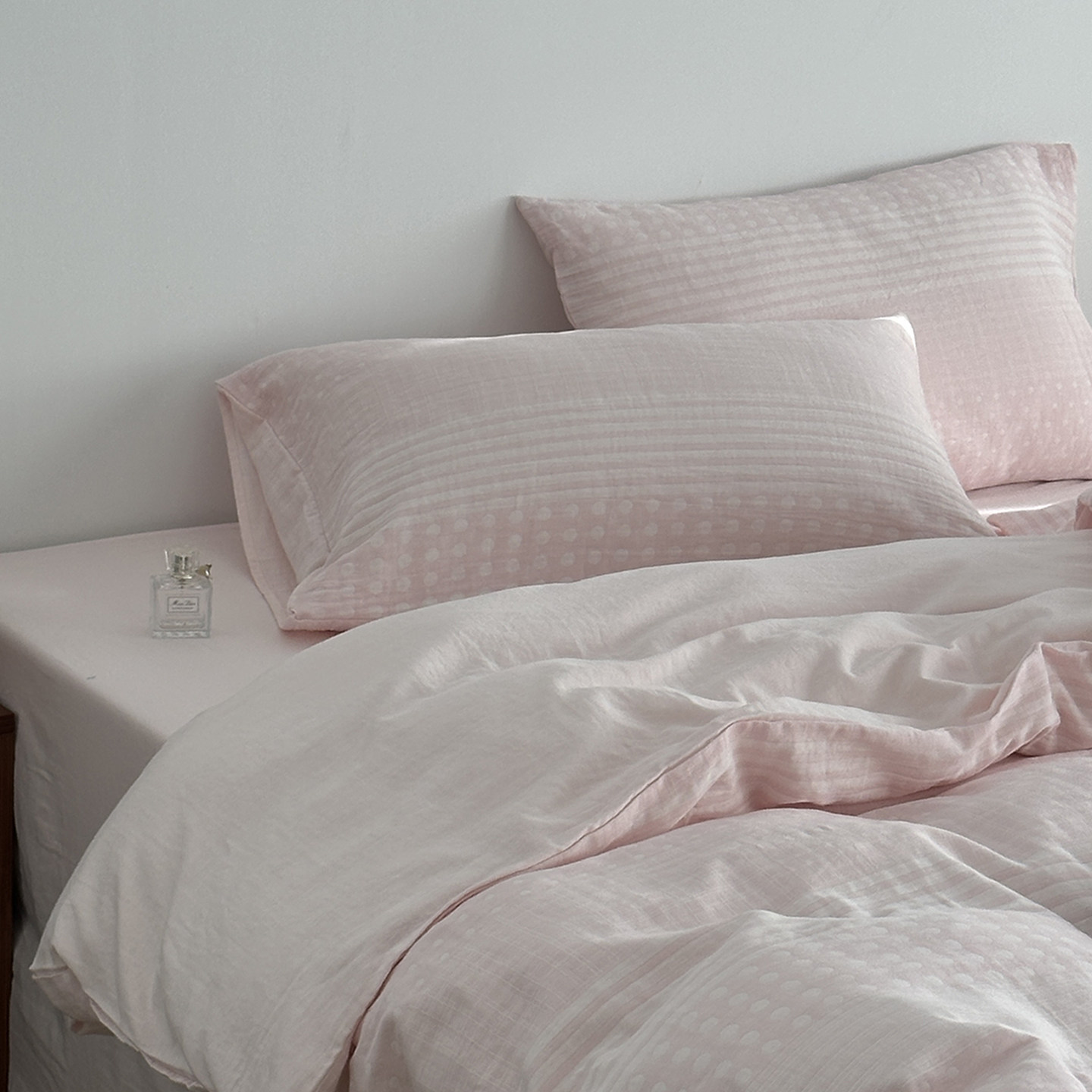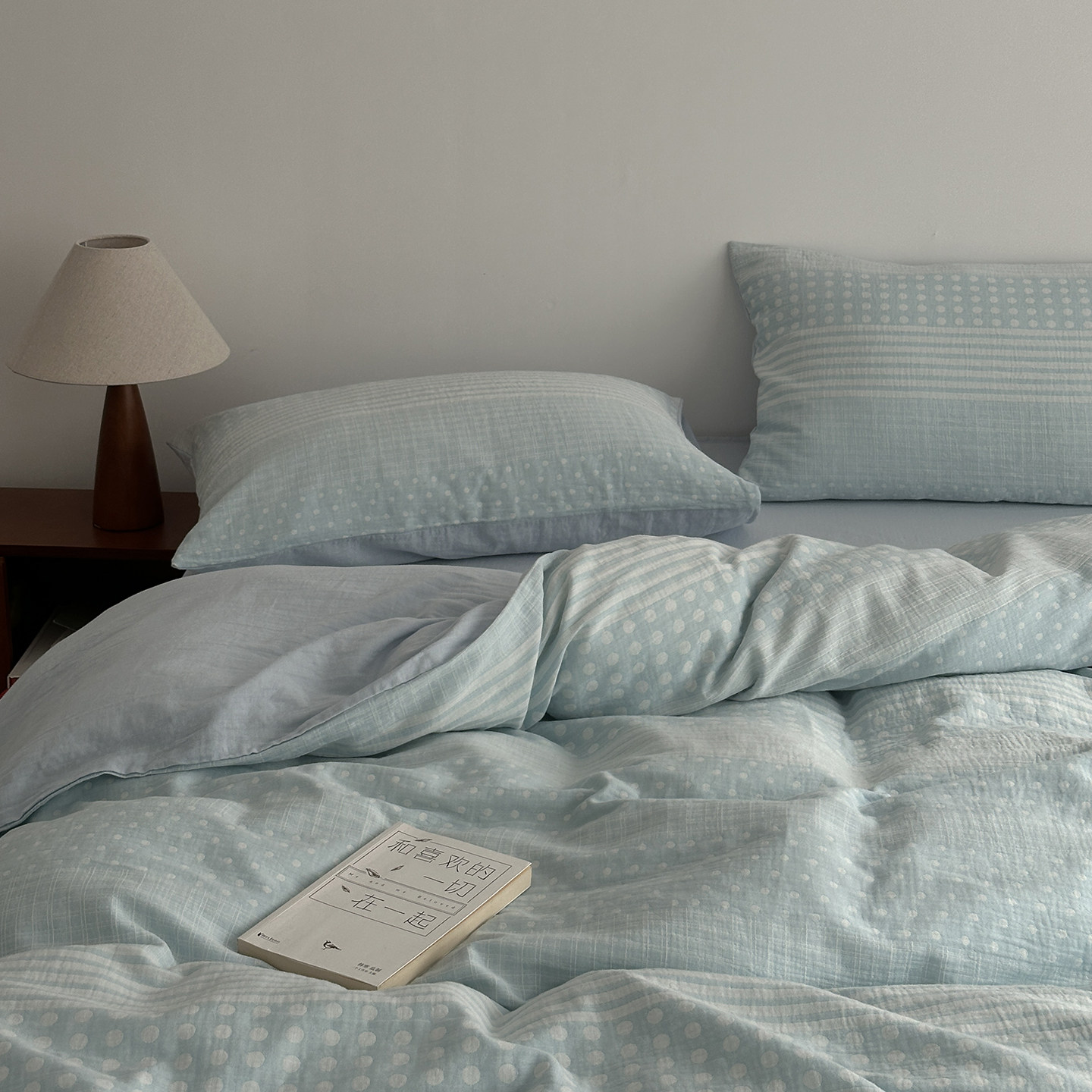 超柔全棉双层纱床上用品四件套可裸睡色织纯棉大提花波点被套双人