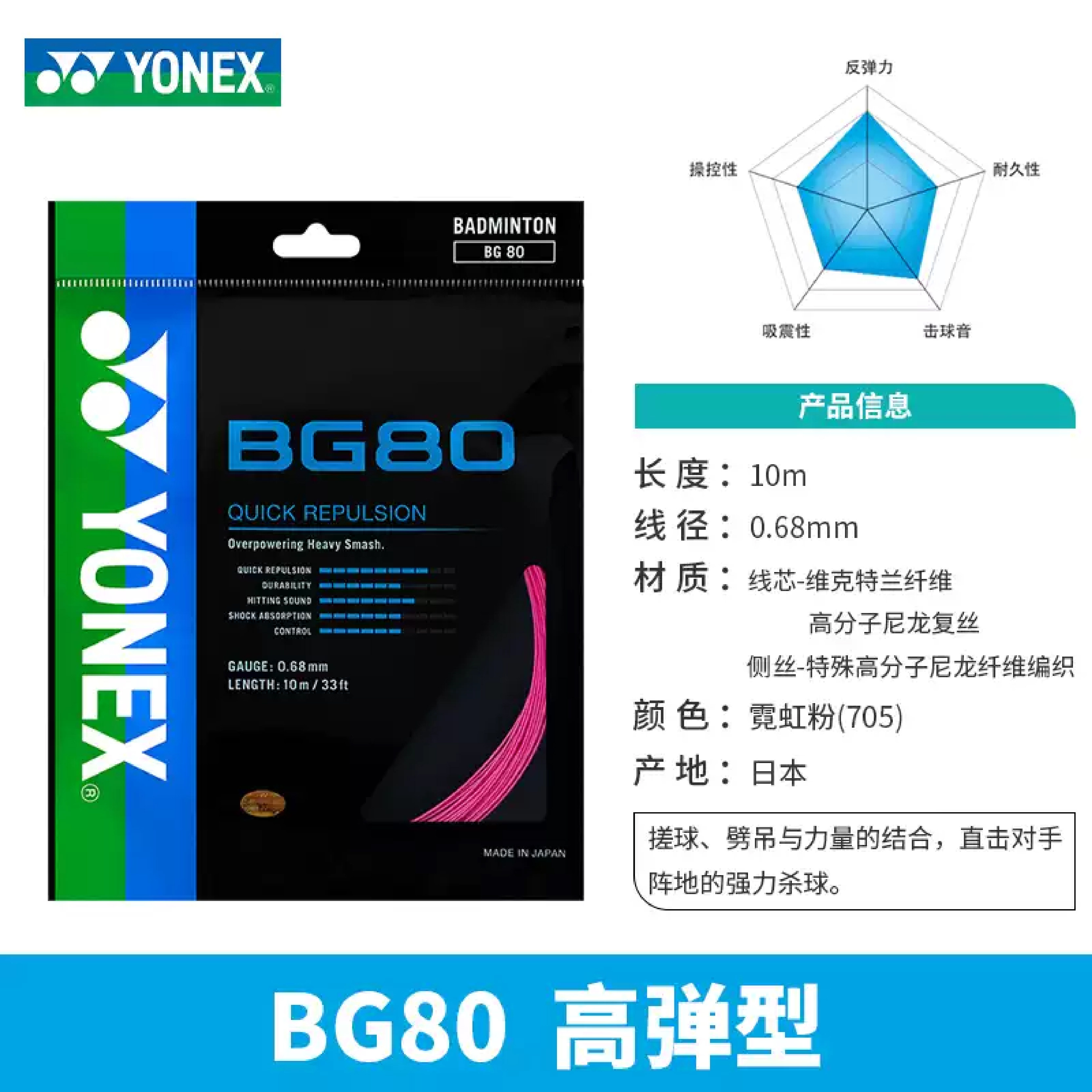 羽毛球拍线 专柜正品 YONEX 尤尼克斯BG80 66F BG85羽毛球线