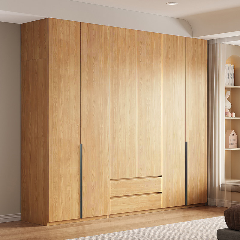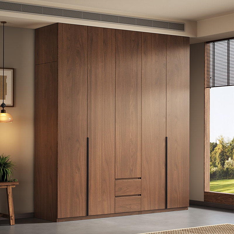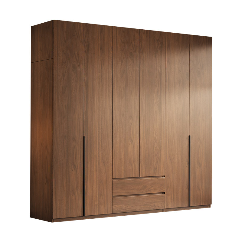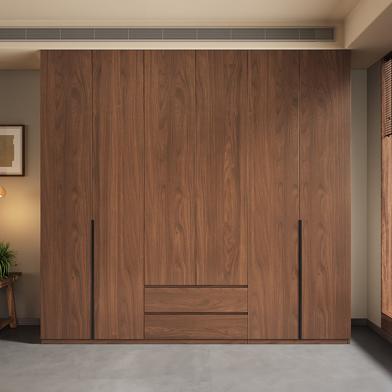胡桃色衣柜家用卧室包安装实木柜子2026爆款出租房原木风衣橱定制