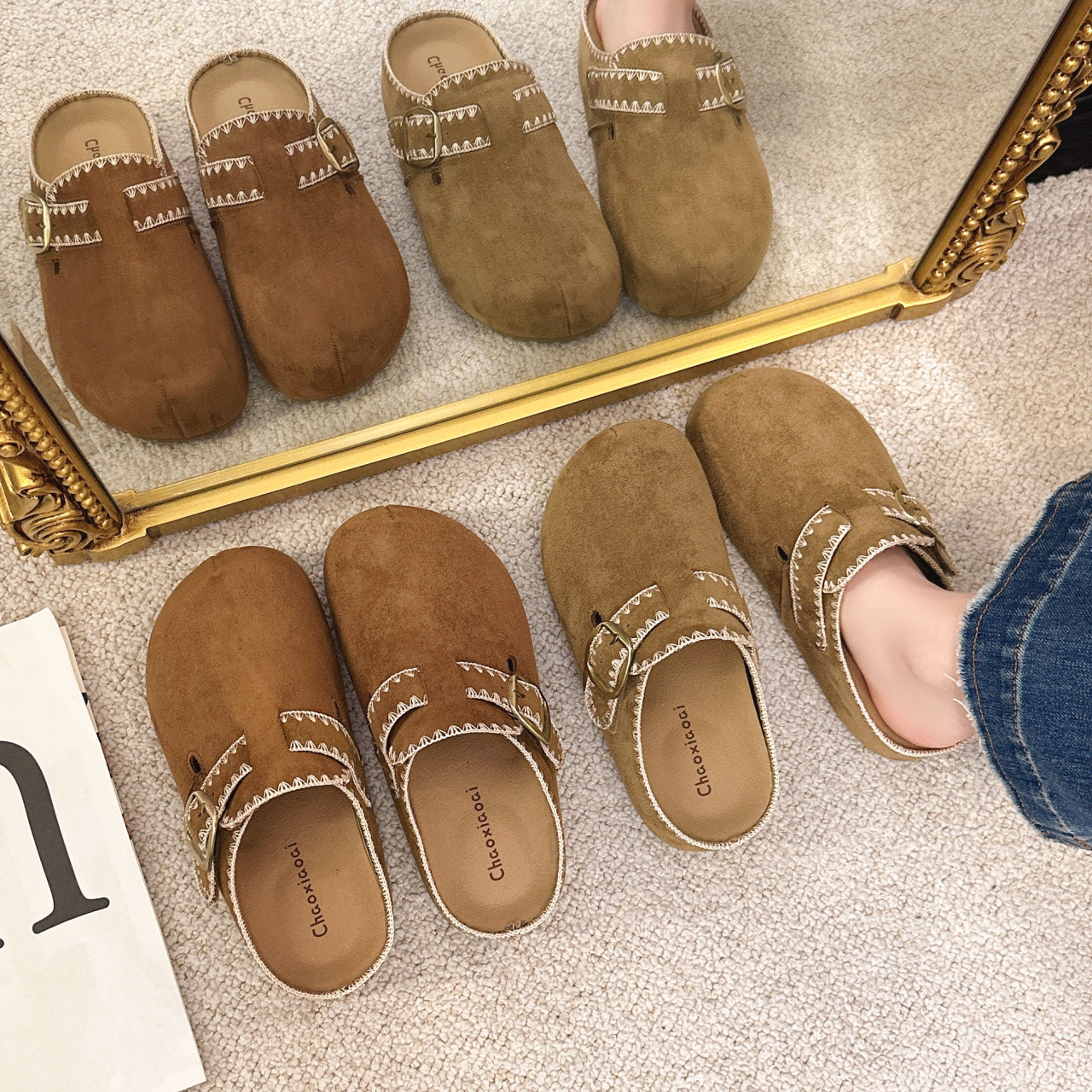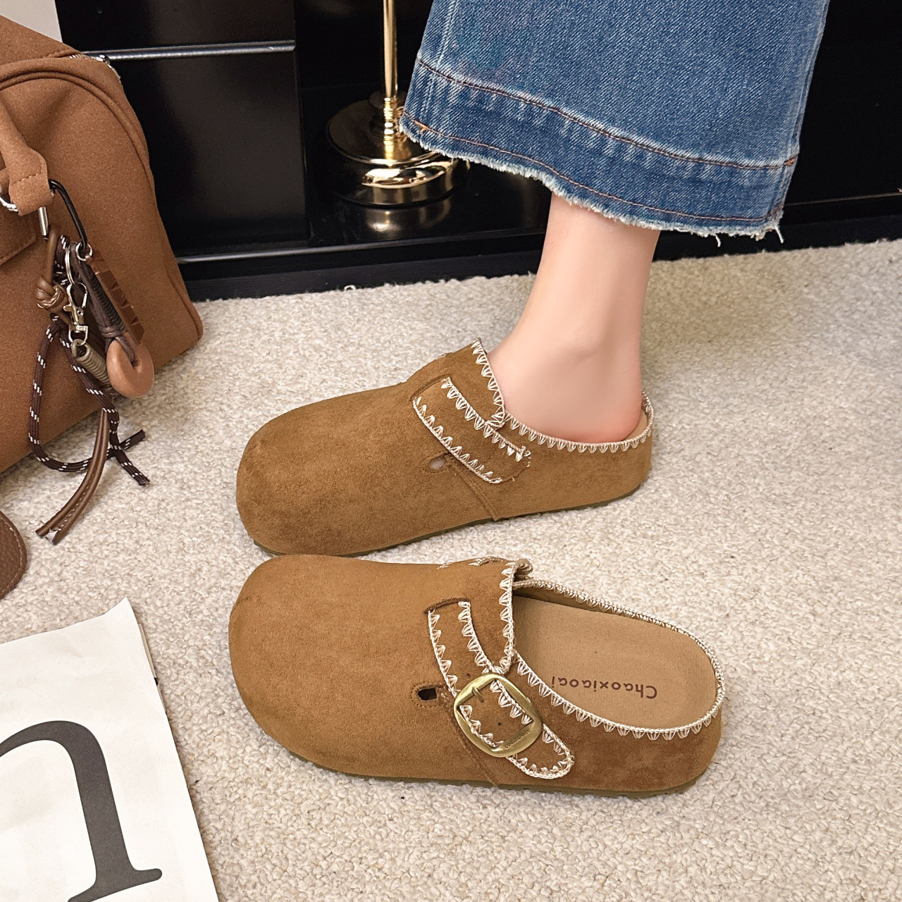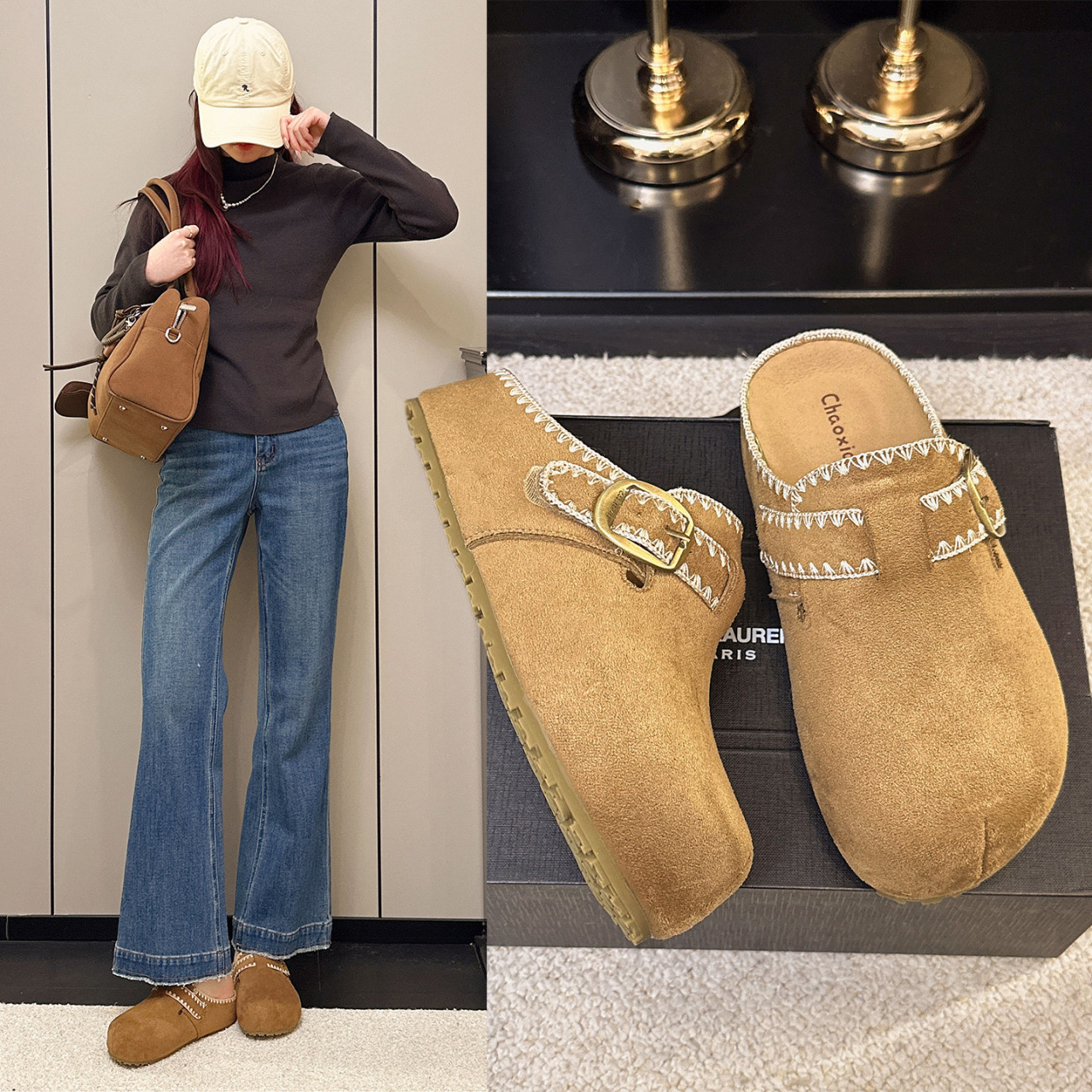 厚底内增高包头半拖勃肯鞋女鞋2026新款春季一脚蹬配裙子博肯单鞋