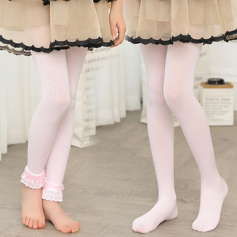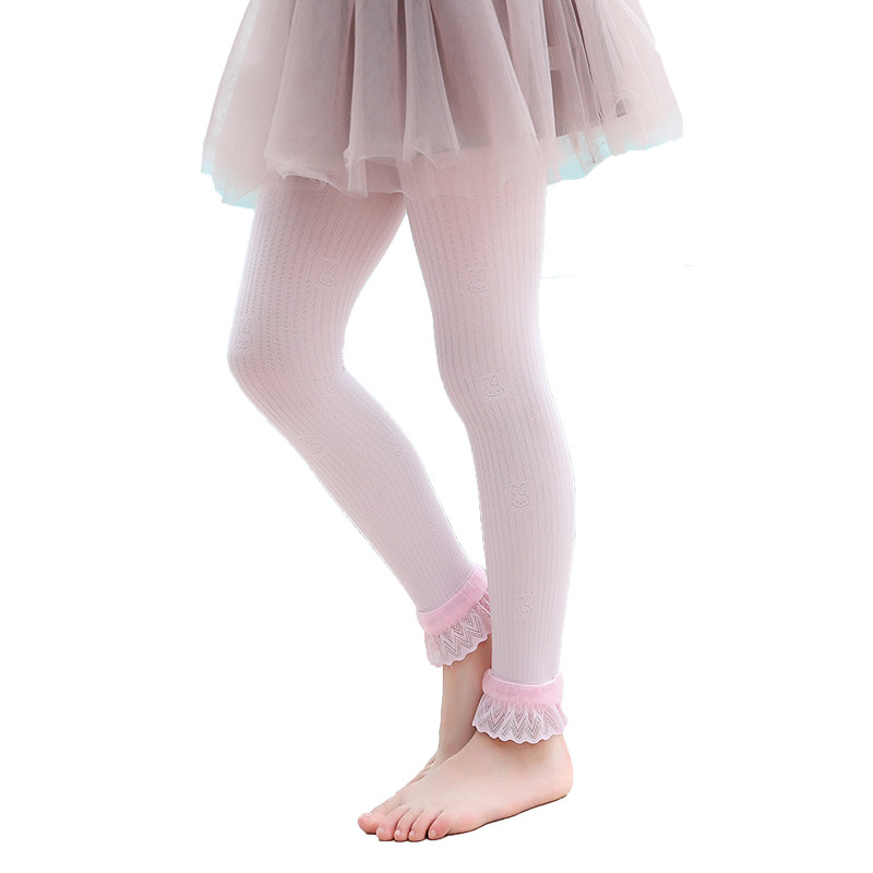 女童打底裤春秋外穿纯棉薄款配裙子中大童花边可爱高弹儿童长裤子