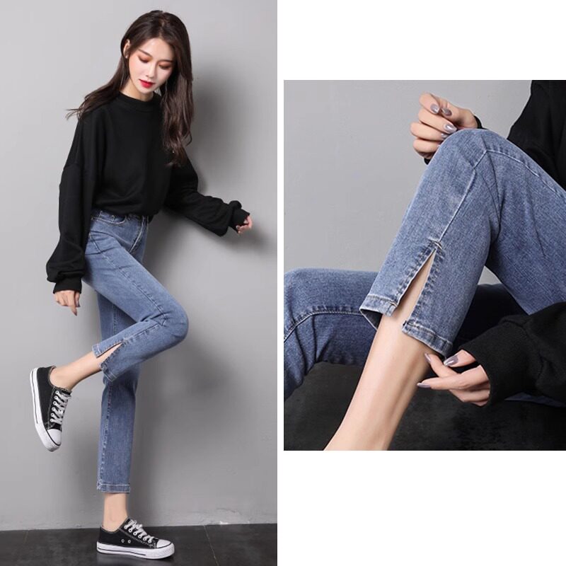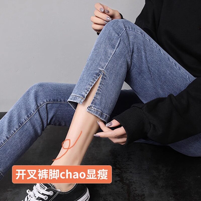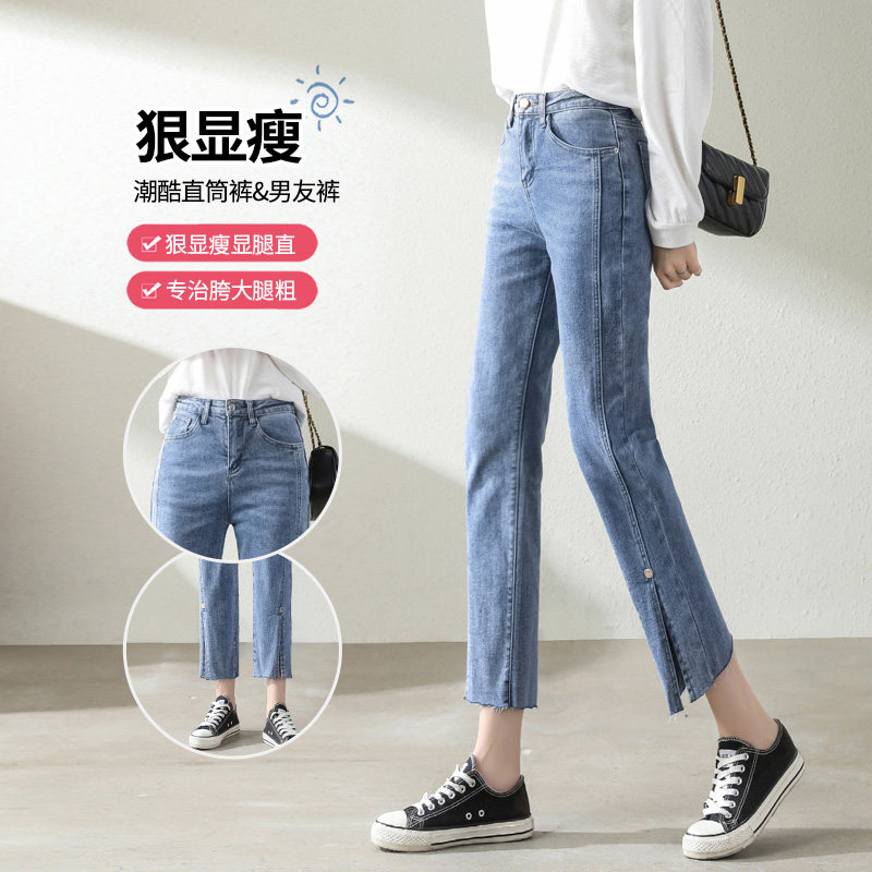 开叉直筒牛仔裤女高腰薄宽松2026年春夏新款显瘦阔腿八九分烟管裤