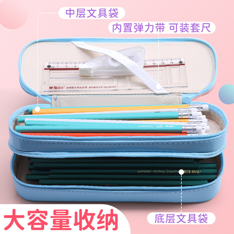 晨光大容量笔袋文具盒女孩款小学生初中生黑科技网红铅笔盒男生儿童高颜值可爱卡通一二三年级双层多功能简约