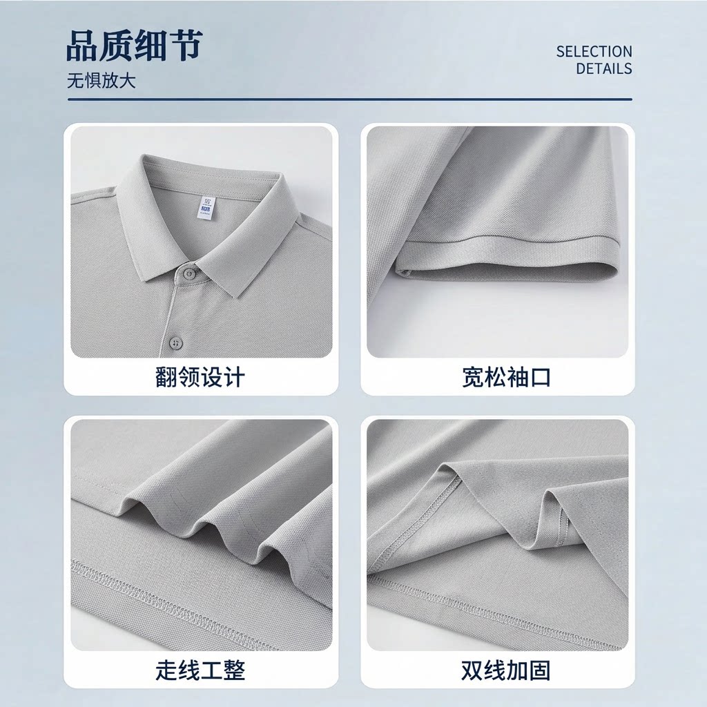 高端商务纯棉短袖polo衫定制logo翻领工作服夏季透气男女工装t恤