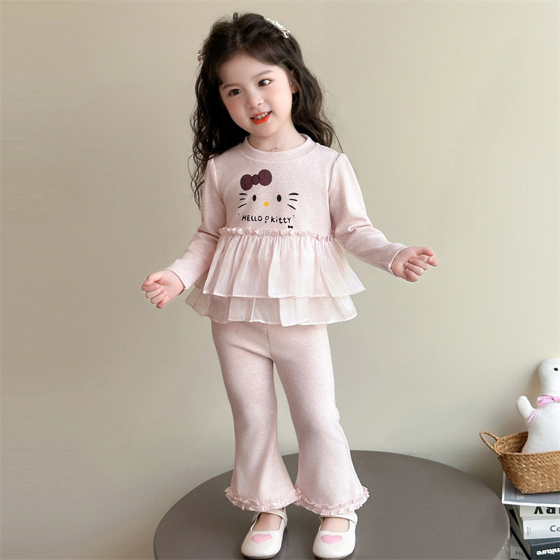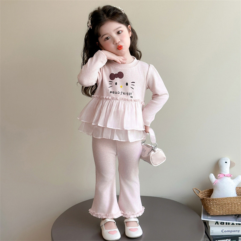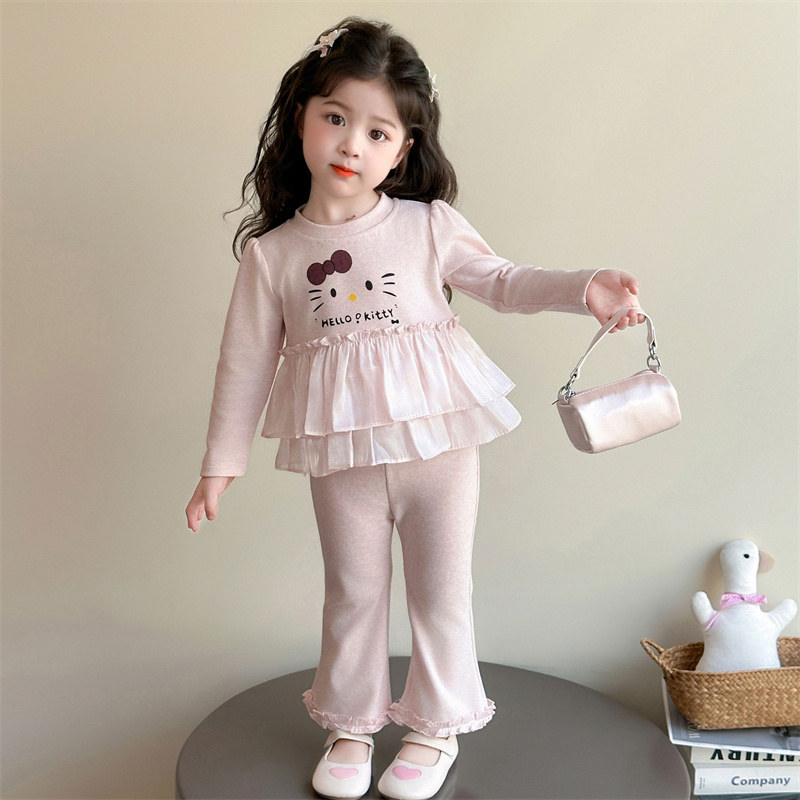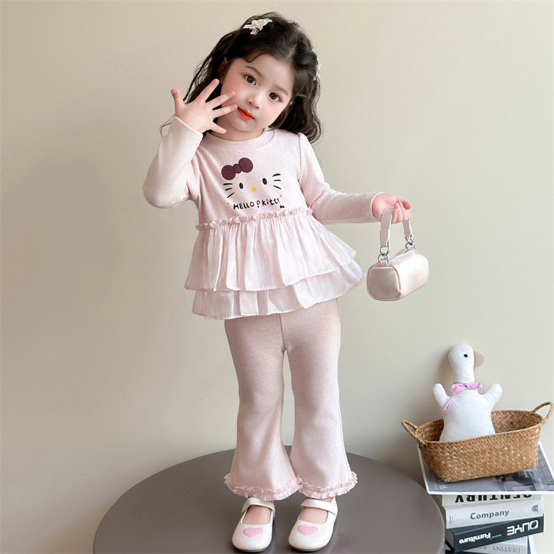 女童套装春季2026新款女宝宝猫咪喇叭裤春秋款儿童装洋气时髦春装