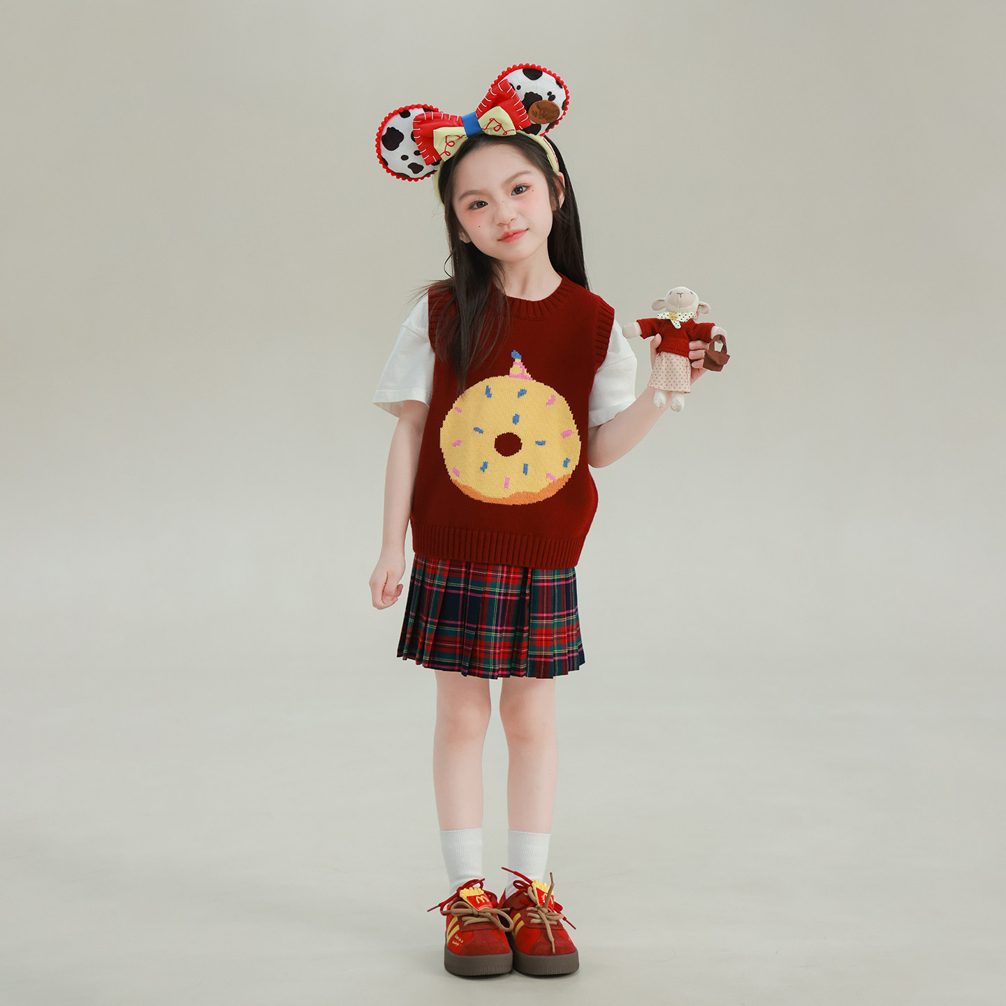 大耳象女童提花图案毛衣马甲2026春季新款宝儿卡通圆领无袖上衣