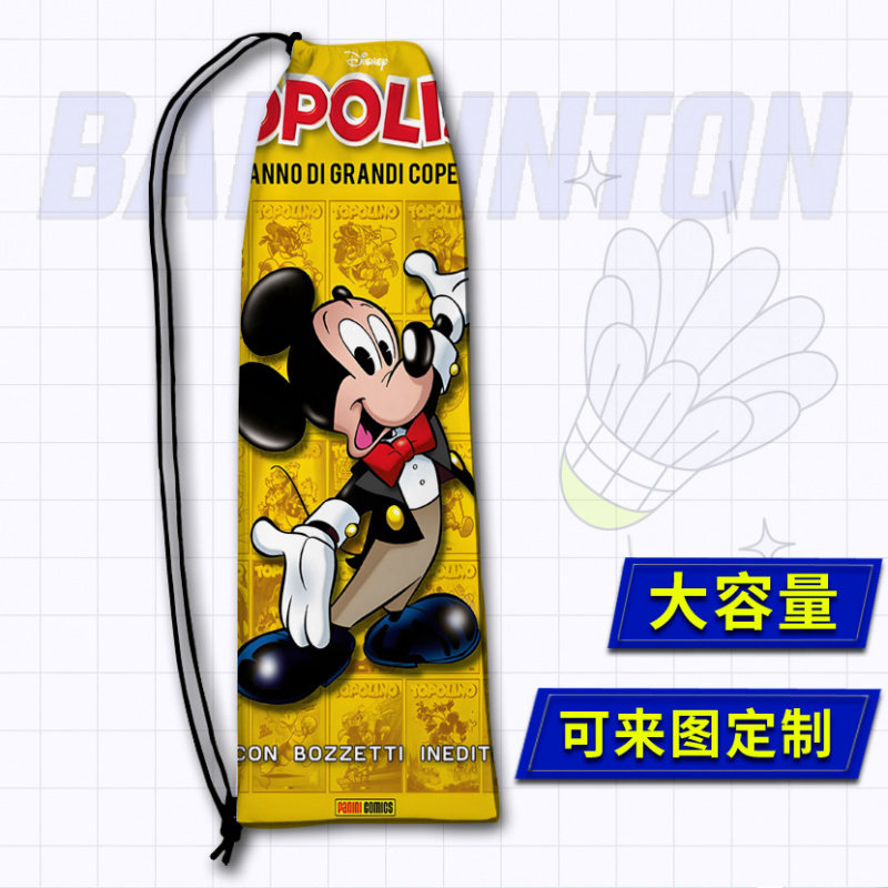 米老鼠卡通儿童小学生大容量羽毛球拍收纳袋抽绳款便携羽拍袋子
