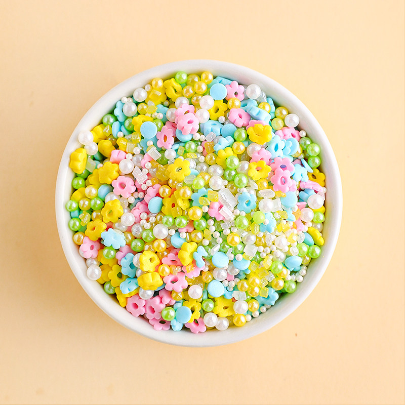 61儿童节蛋糕装饰糖珠彩色系圆圈彩带花朵爱心糖烘焙甜品奶油点缀
