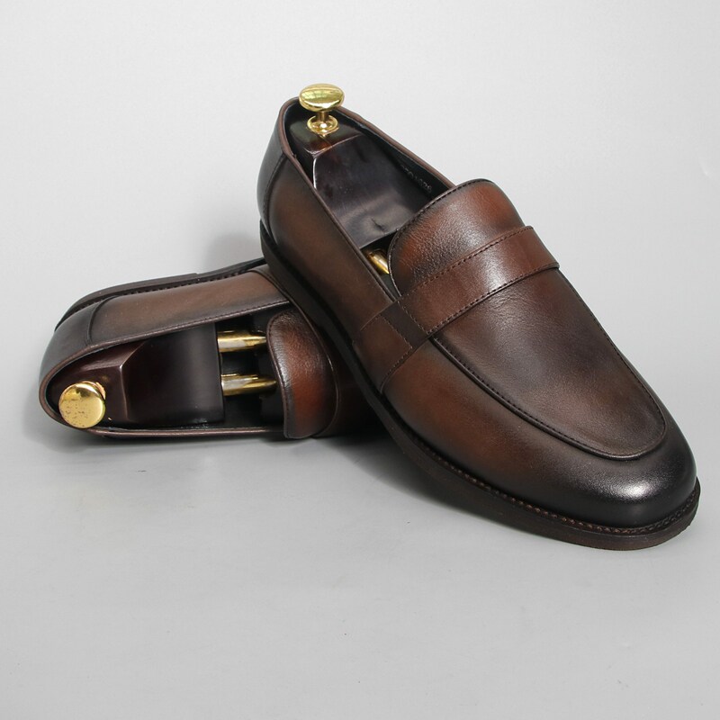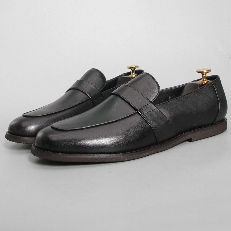 捡漏稀缺广州外贸头层牛皮男鞋新款一脚蹬乐福鞋软底透气商务皮鞋