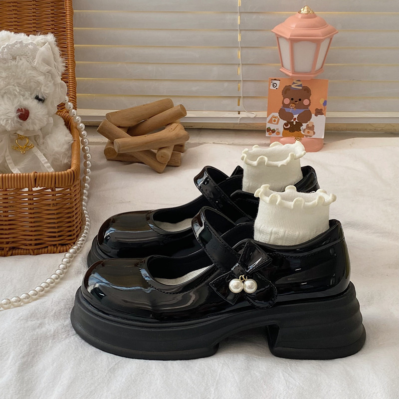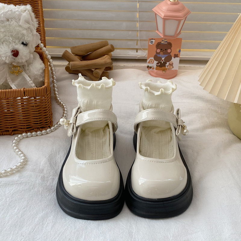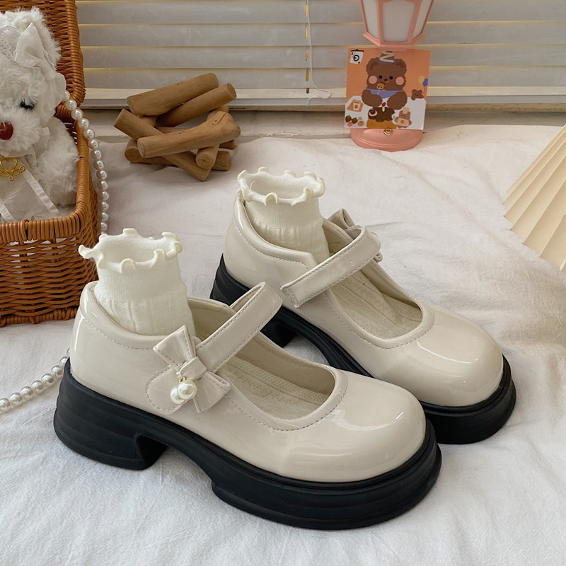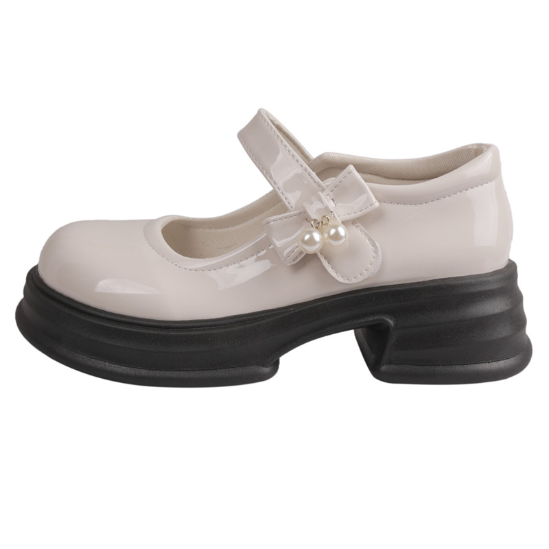 白色复古法式玛丽珍鞋女2026新款百搭浅口单鞋圆头增高厚底小皮鞋